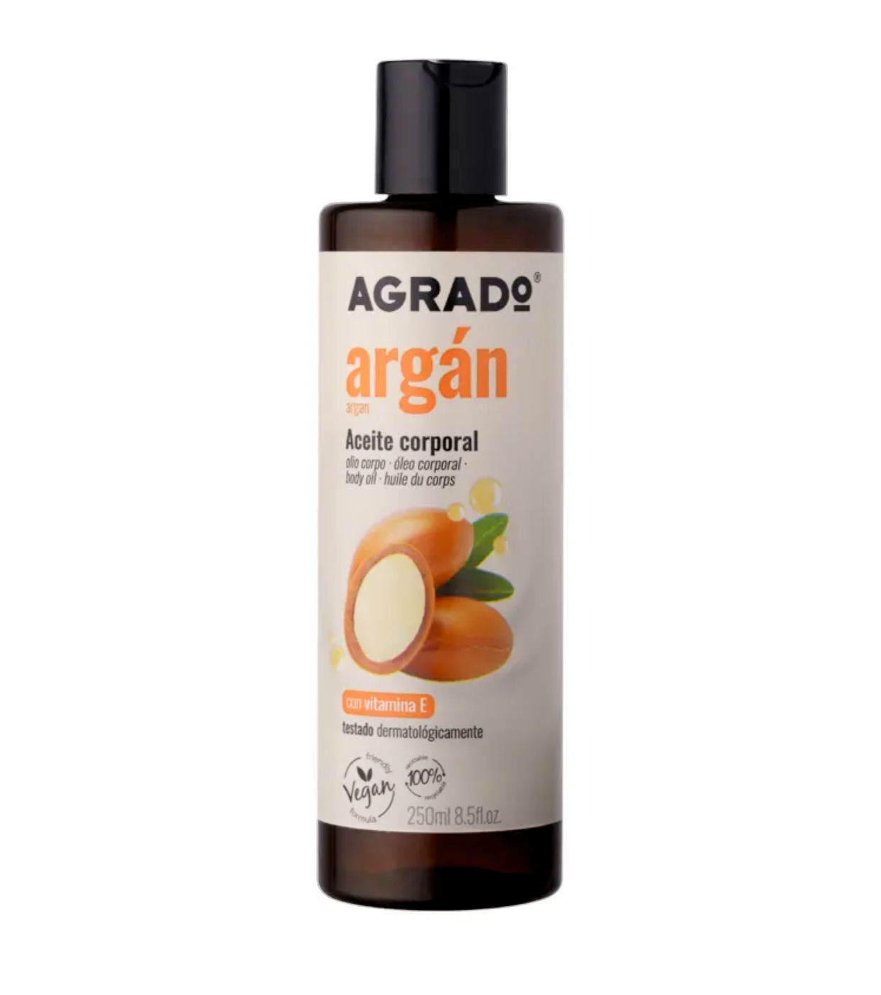 AGRADO Argan Body Oil idrata e ammorbidisce la pelle, lasciandola morbida e setosa al tatto.