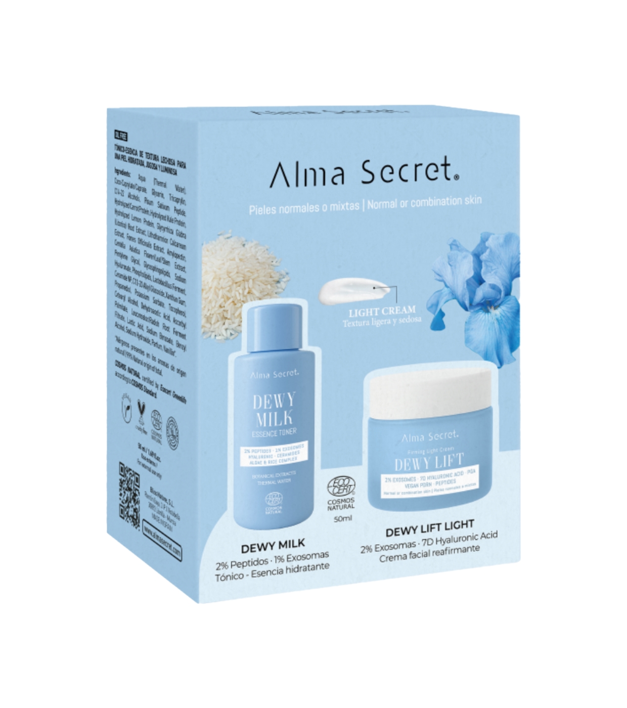 - 1 x Dewy Lift Light Cream (50ml): Crema rassodante e ridensificante per pelli normali/miste. Dewy Lift Light Cream è una crema quotidiana dalla texture leggera e setosa, perfetta per pelli normali o miste. La sua formula avanzata con esosomi, peptidi, PDRN vegano e acido ialuronico 7D agisce dall'interno per migliorare la compattezza, la densità e la levigatezza del viso.