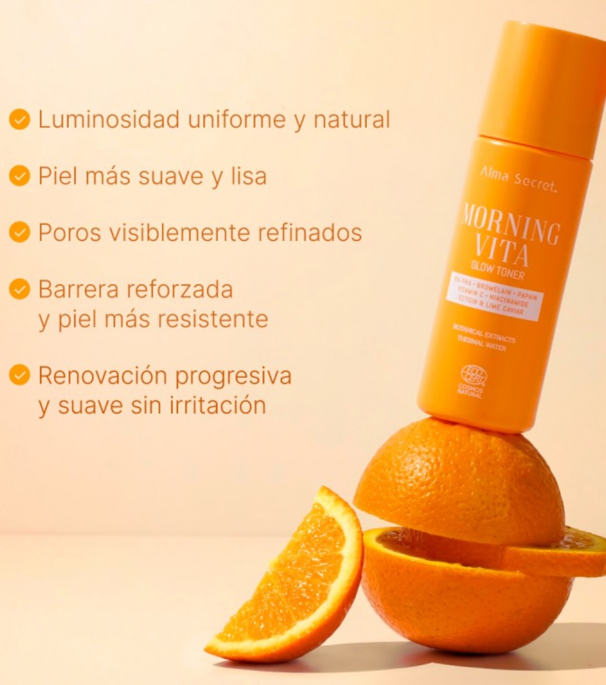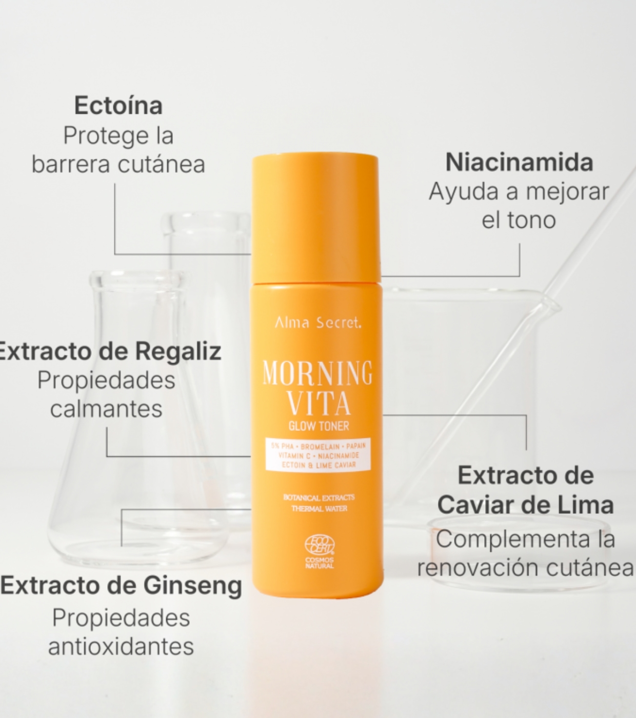 Il tonico esfoliante Morning Vita Glow di Alma Secret è studiato per migliorare la luminosità, uniformare l'incarnato e levigare la grana della pelle fin dal primo utilizzo.