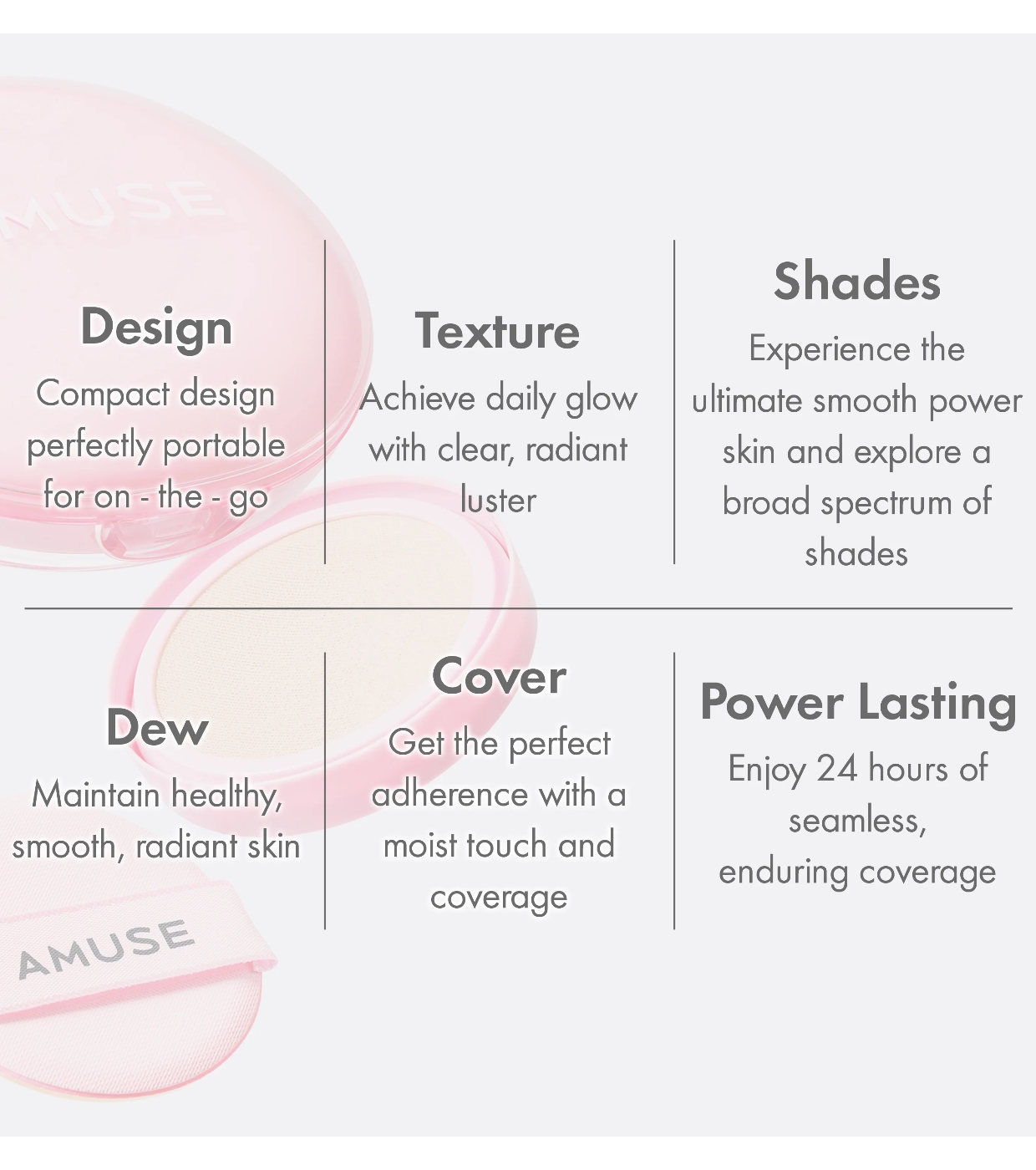 Il Dew Power Vegan Cushion di AMUSE è molto più di un fondotinta: è trucco + trattamento + protezione solare in un unico prodotto.