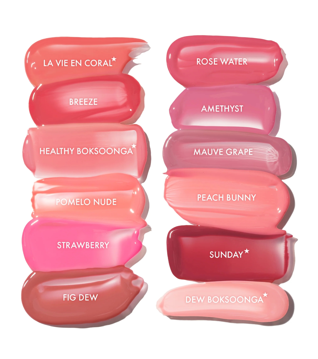 Water, Diphenyl Dimethicone, Diisostearyl Malate, Bis-Diglyceryl Polyacyladipate-2, Hydrogenated Polyisobutene, Diglycerin, Dipropylene Glycol, Cetyl PEG/PPG-10/1 Dimethicone, Sorbitan Isostearate, Polysorbate 60, Pentylene Glycol, Octyldodecanol, Ceteareth-20, Titanium Dioxide (CI 77891), Hydroxyethyl Acrylate/Sodium Acryloyldimethyl Taurate Copolymer, Phenoxyethanol, Squalane, Stevia Rebaudiana Extract, Fragrance, Red 33 (CI 17200), Yellow 5 (CI 19140), Ethylhexylglycerin, Aluminum Hydroxide, Caprylic/Capric Triglyceride, Ammonium Polyacrylate, Tocopheryl Acetate, Red 28 (CI 45410), Butylene Glycol, Blue 1 (CI 42090), Mangifera Indica (Mango) Fruit Extract, Pyrus Malus (Apple) Fruit Extract, Pentaerythrityl Tetra-di-t-butyl Hydroxyhydrocinnamate