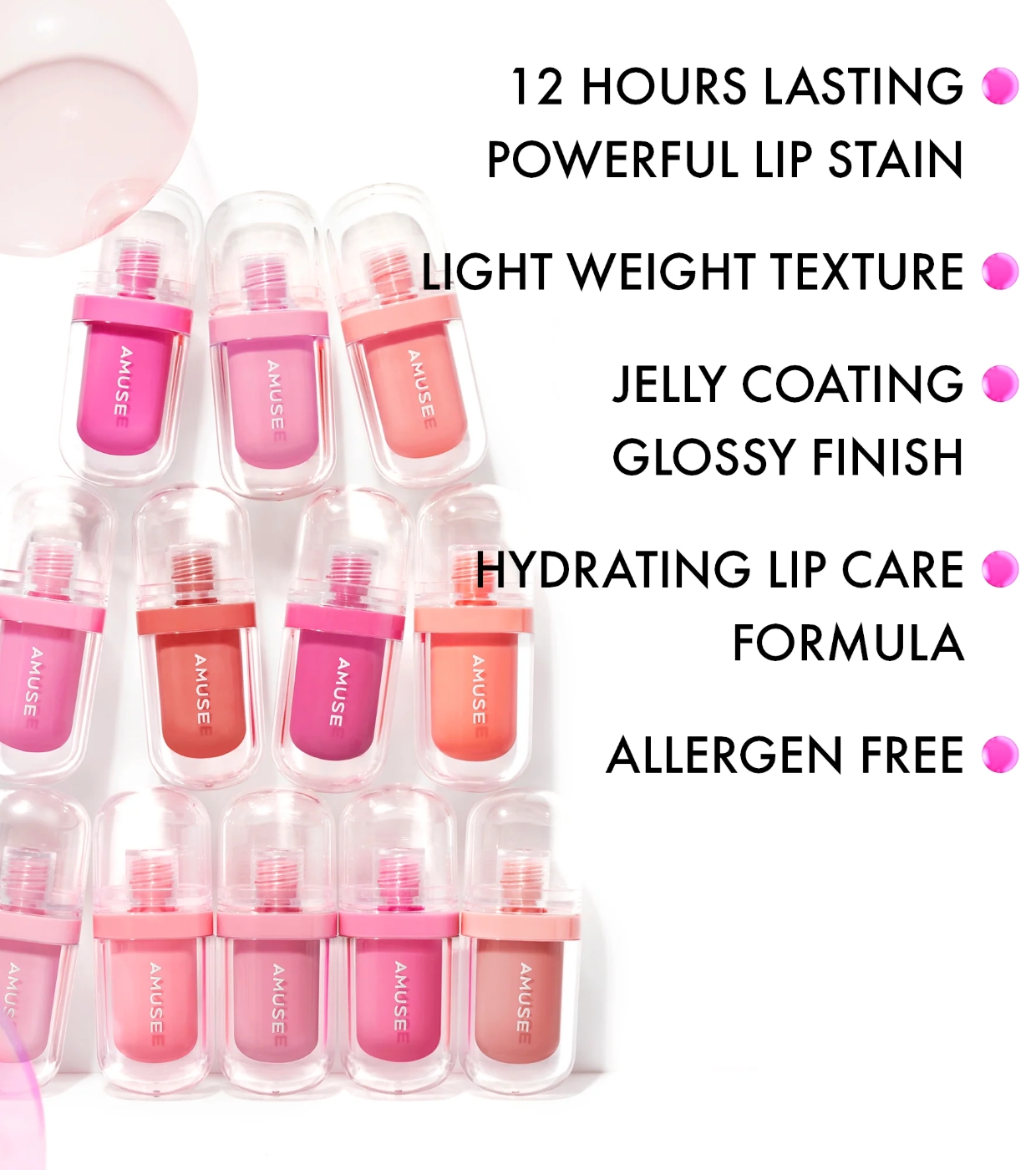 La tinta AMUSE Jel-Fit Tint unisce il meglio del trucco e della cura delle labbra: idratazione, protezione e un gloss effetto wow che trasforma qualsiasi look in un momento di irresistibile brillantezza.
