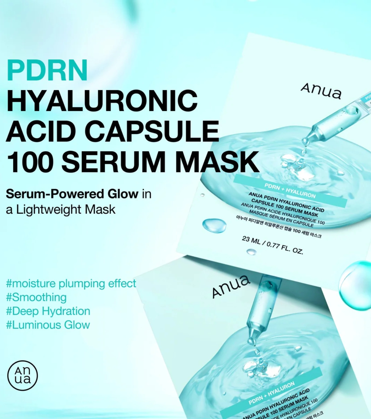 La Anua PDRN Hyaluronic Acid Capsule 100 Serum Mask è una maschera viso in idrogel ultrasottile, studiata per fornire idratazione profonda, rigenerazione epidermica e luminosità immediata.