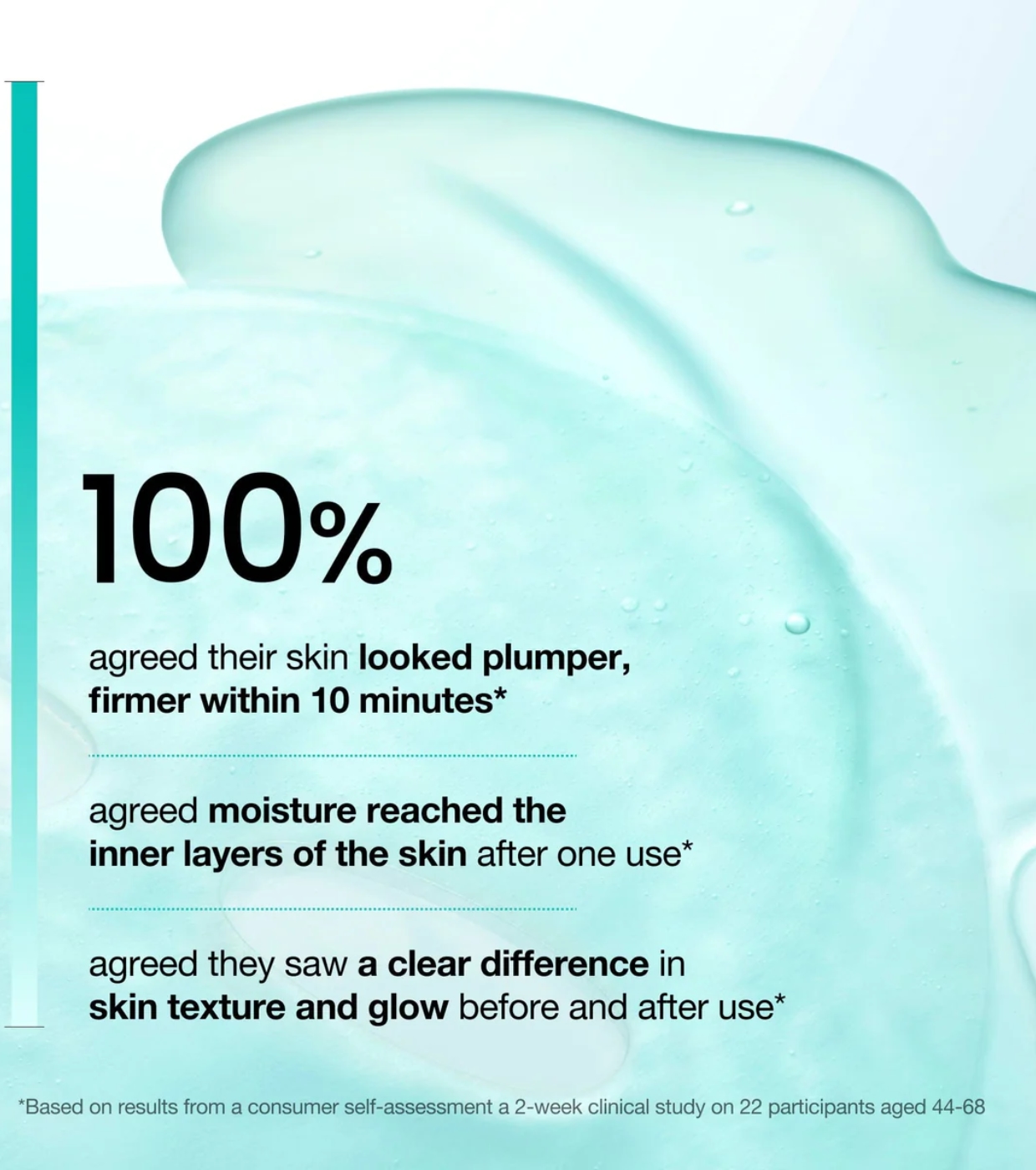 Il complesso di 11 acidi ialuronici, con pesi molecolari diversi, garantisce un'idratazione multistrato con effetto rimpolpante e un effetto "glass skin". Il collagene idrolizzato migliora la compattezza e l'aspetto della texture cutanea.
