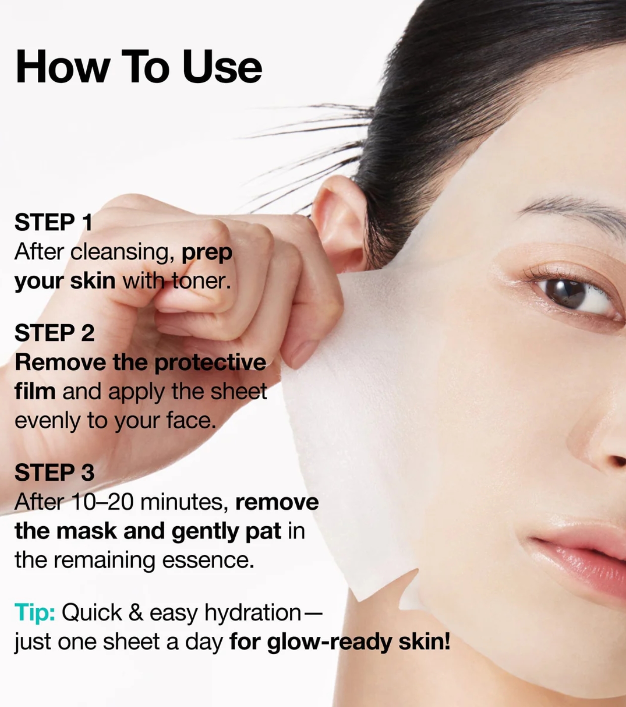 Grazie al suo idrogel ultrasottile, la maschera aderisce perfettamente al viso, consentendo la massima veicolazione dei principi attivi. I risultati sono visibili fin dalla prima applicazione.