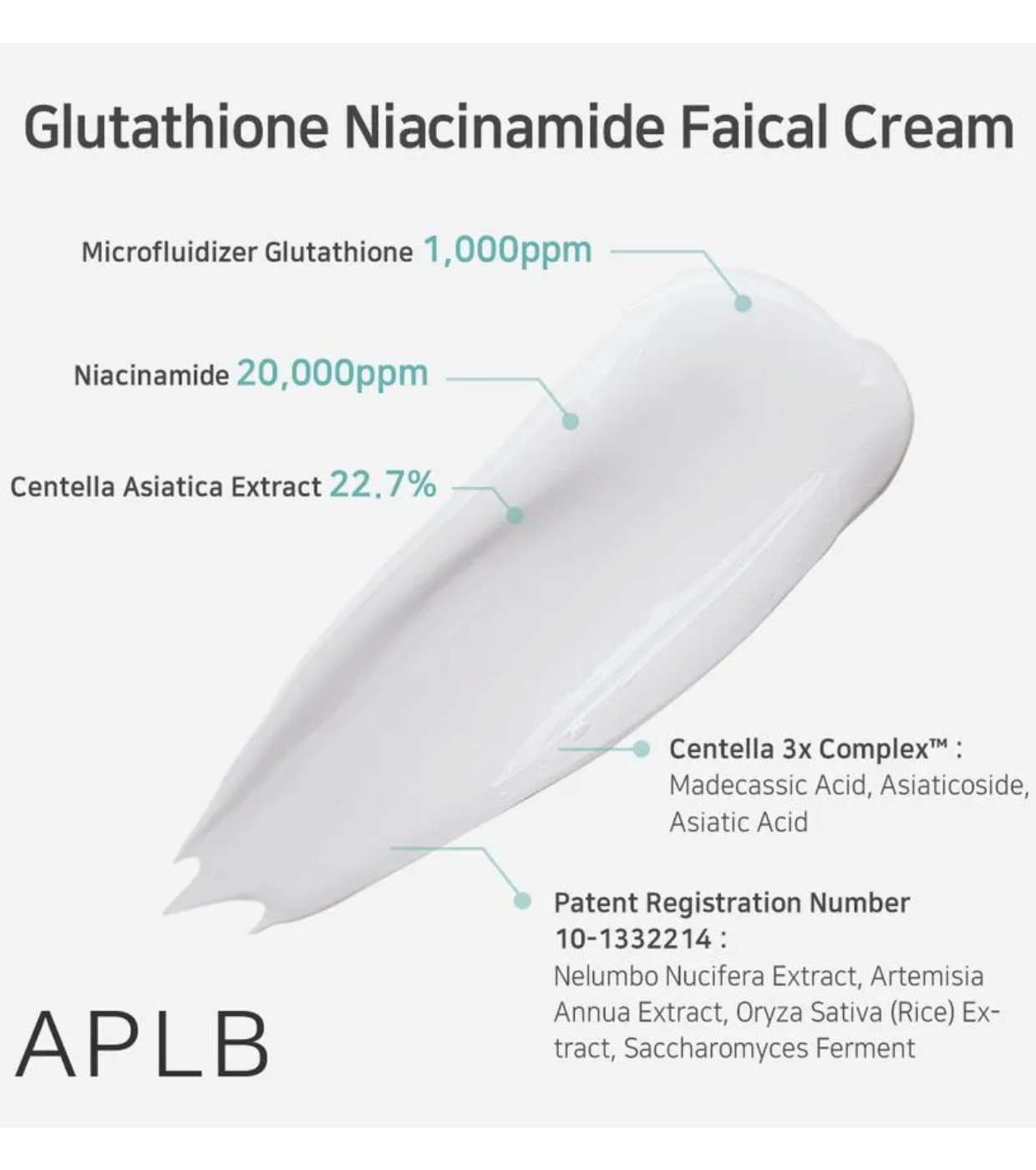La crema viso al glutatione e niacinamide di Glutathione Niacinamide Facial Cream è una crema viso leggera e multifunzione che idrata, lenisce e migliora la luminosità della pelle, donandole elasticità, compattezza e un aspetto sano.