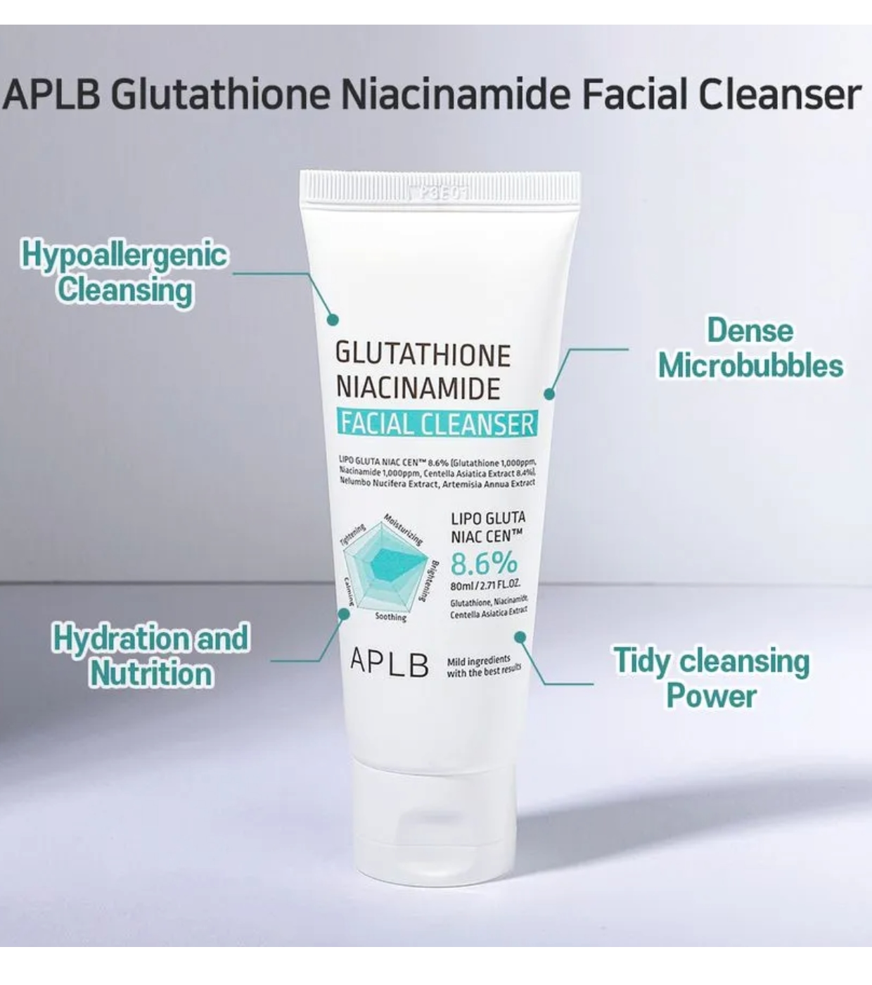 Il detergente viso Glutathione Niacinamide Facial Cleanser di APLB è un detergente viso delicato per uso quotidiano che deterge in profondità la pelle senza seccarla o alterarne l'equilibrio naturale.
