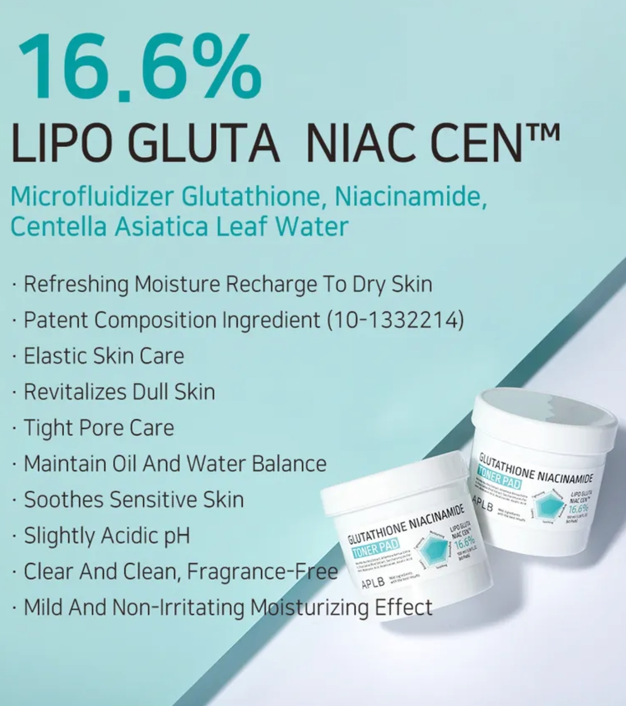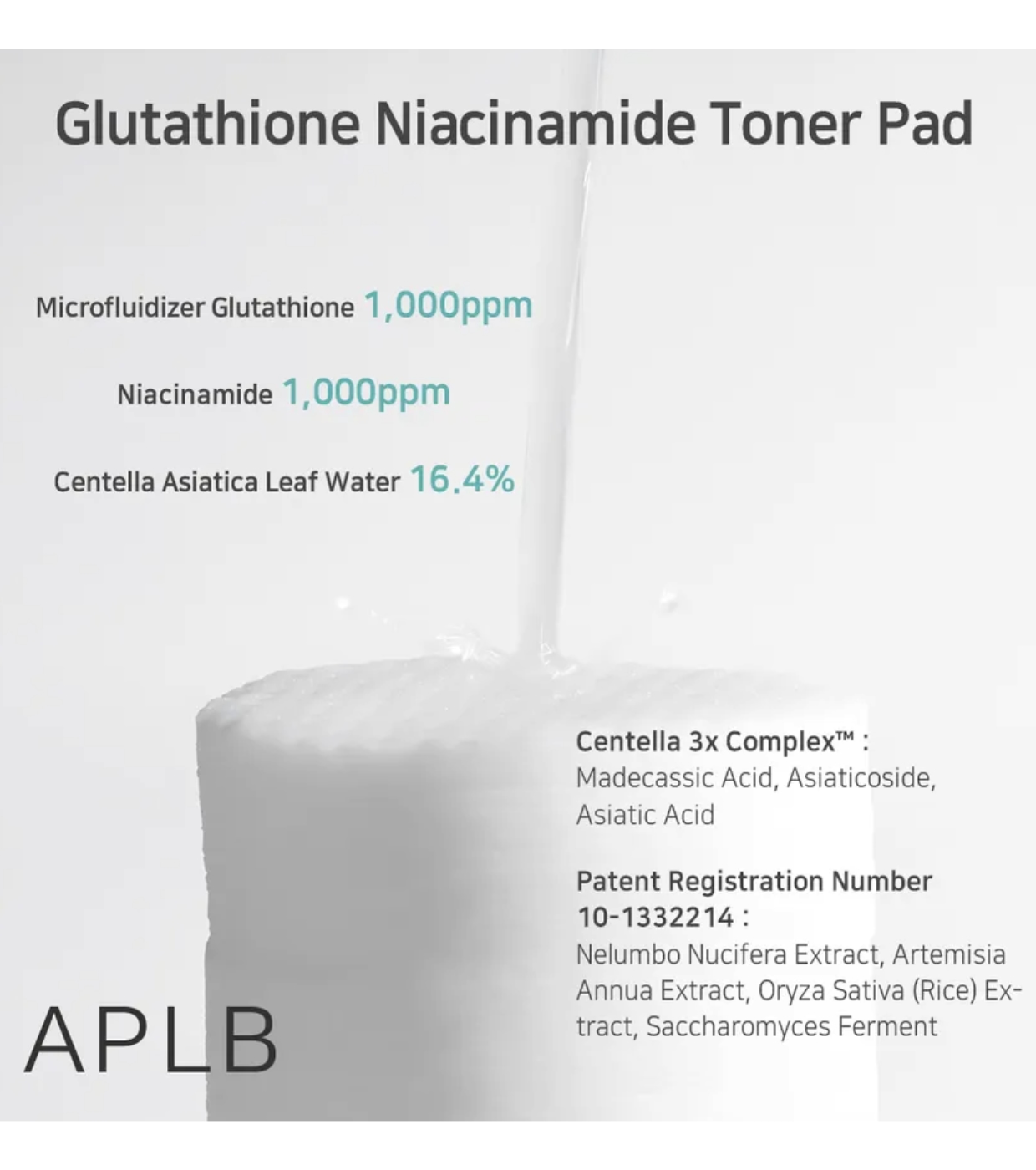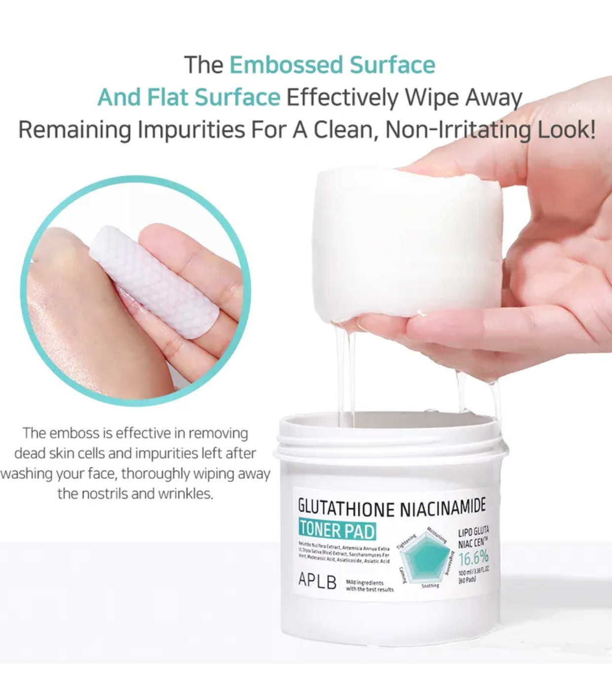 Glutathione Niacinamide Toner Pads I dischetti tonificanti al glutatione e niacinamide sono dischetti di cotone imbevuti di un tonico leggero che idratano, leniscono e illuminano la pelle in modo rapido ed efficace.