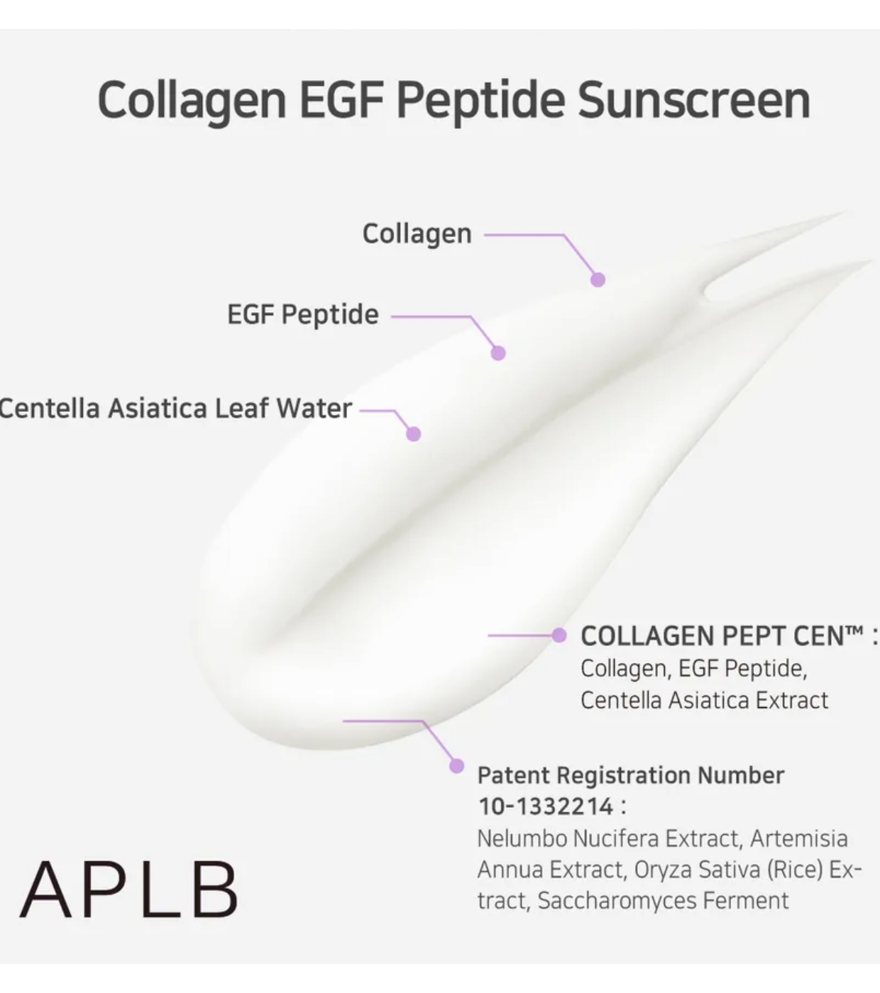 Collagen EGF Peptide Sunscreen Collagen EGF Peptide Sunscreen è una protezione solare multifunzione che offre un'elevata protezione SPF50+ PA++++ contro i raggi UVA e UVB, idratando, rassodando e proteggendo la pelle dall'invecchiamento precoce.