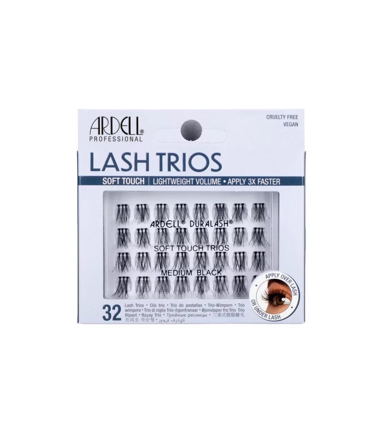 Ardell Soft Touch Trios sono ciglia finte a triplo strato, studiate per offrire volume, definizione e una finitura professionale in pochi secondi.