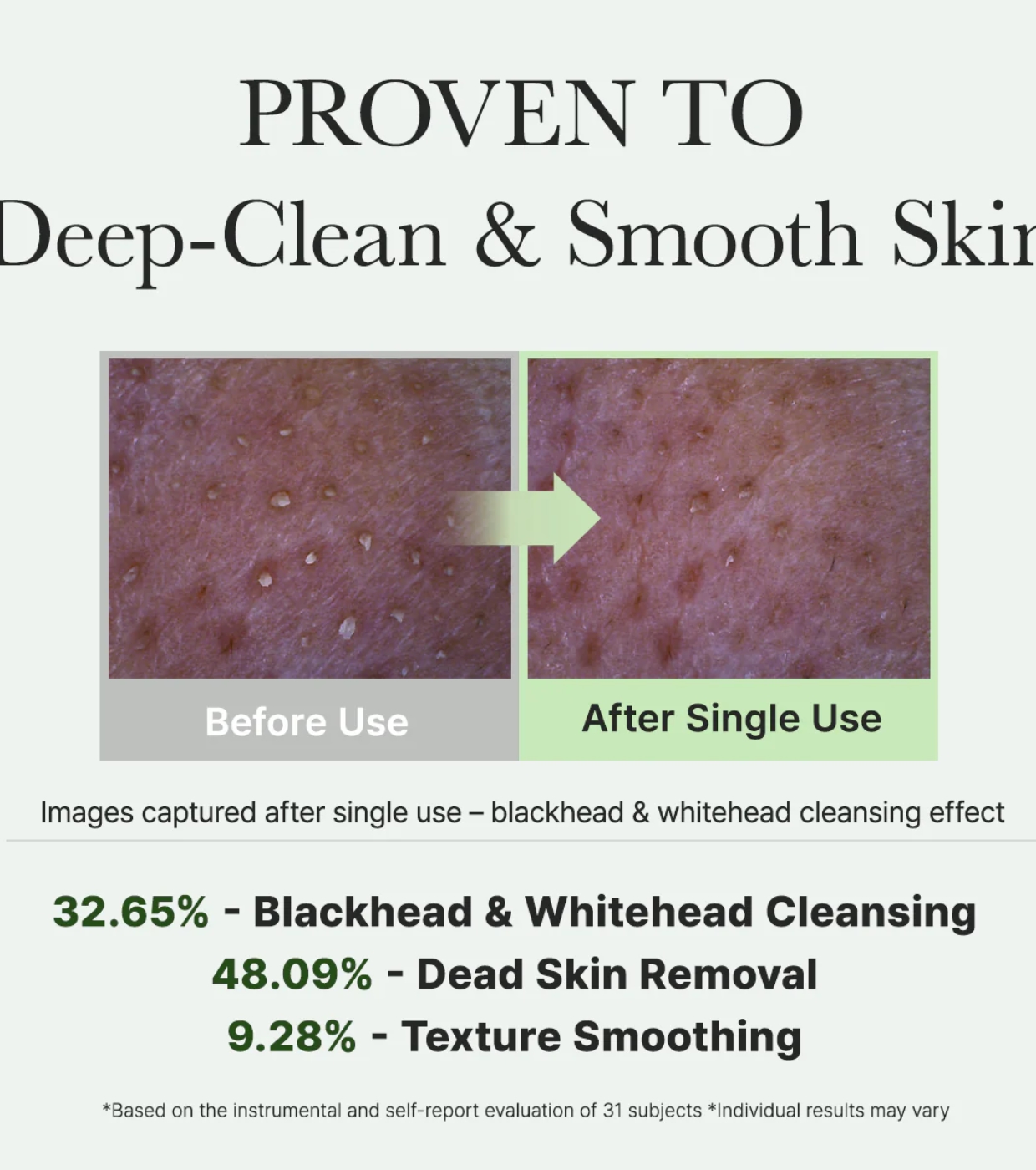 È clinicamente provato che migliora 7 aspetti visibili della pelle, aiutando a liberare i pori, levigare la consistenza, ridurre la comparsa di punti neri e migliorare l'assorbimento dei trattamenti successivi.