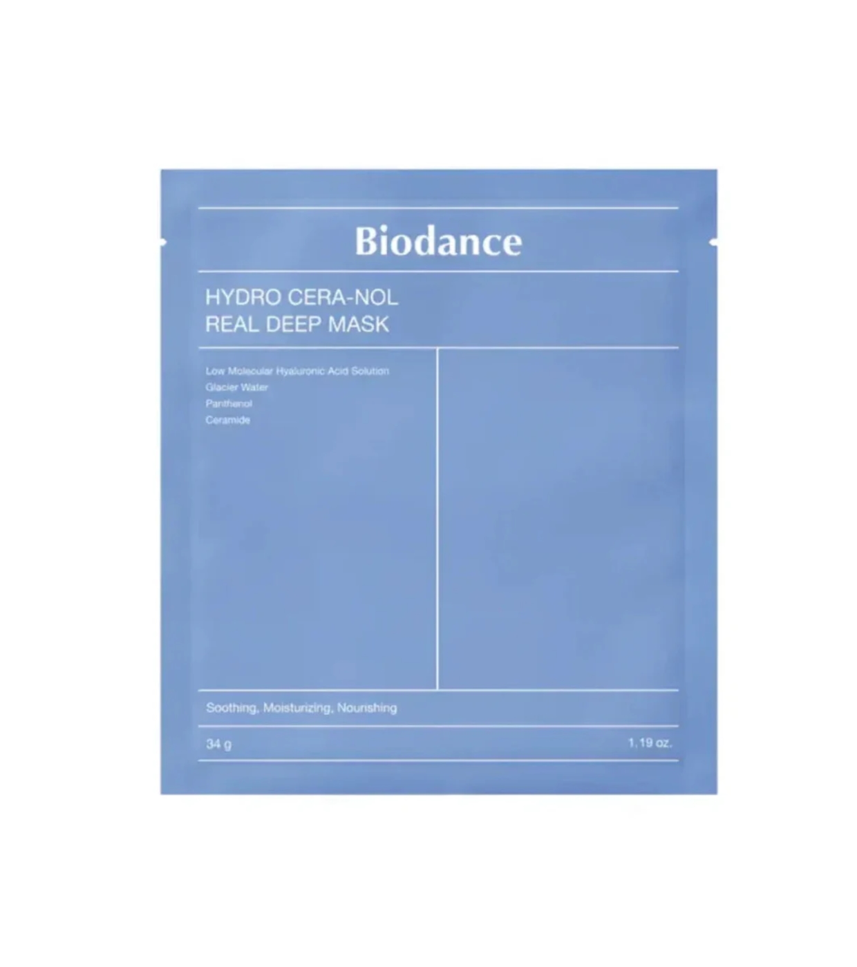 Biodance Hydro Cera-Nol Real Deep Facial Mask aiuta a ricostituire l'idratazione della pelle e rigenera la funzione barriera.