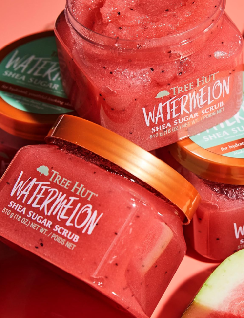 ✨ Tree Hut Esfoliante Corporale Shea Sugar Scrub → l'esfoliante più virale su TikTok. La sua formula con zucchero e burro di karité rimuove le cellule morte lasciando un irresistibile profumo di anguria.