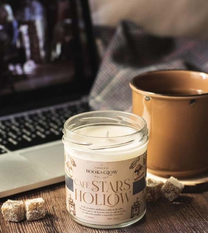Candela di soia della collezione Extraordinary Worlds di Book and Glow. Cafe a Stars Hollow (ex Luke's).