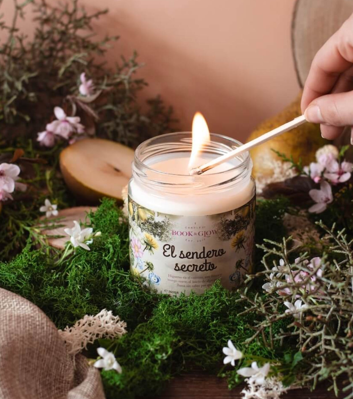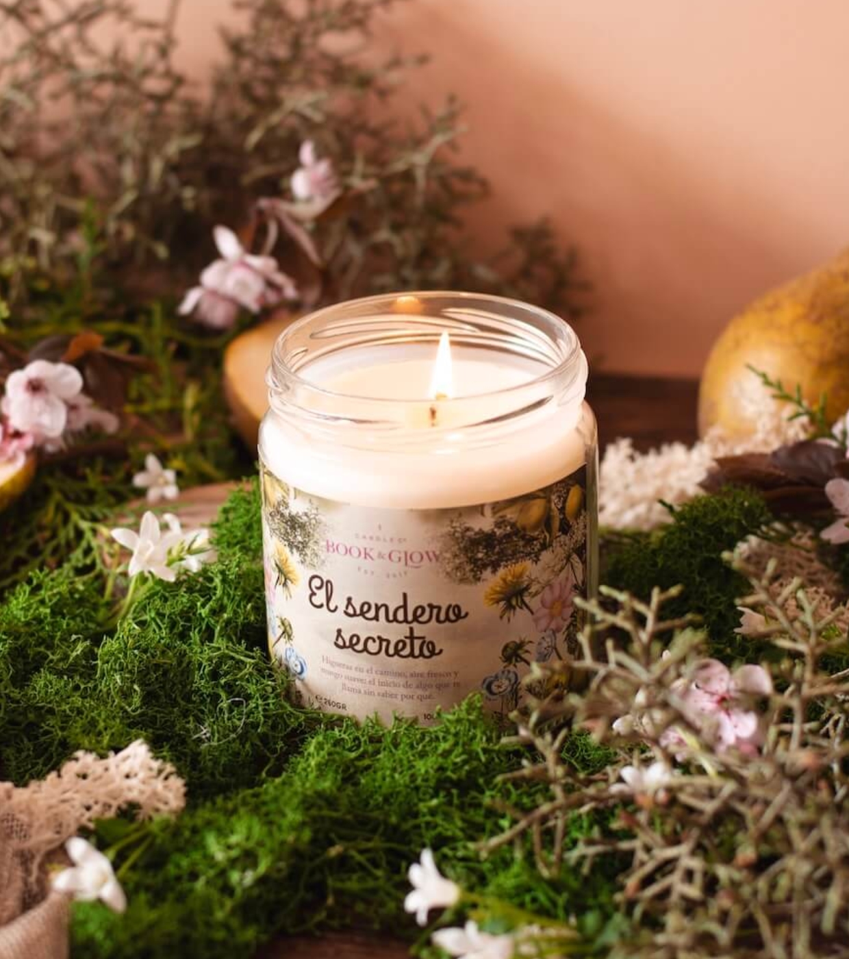 Scopri il profumo della candela El sendero secreto di Book and Glow.