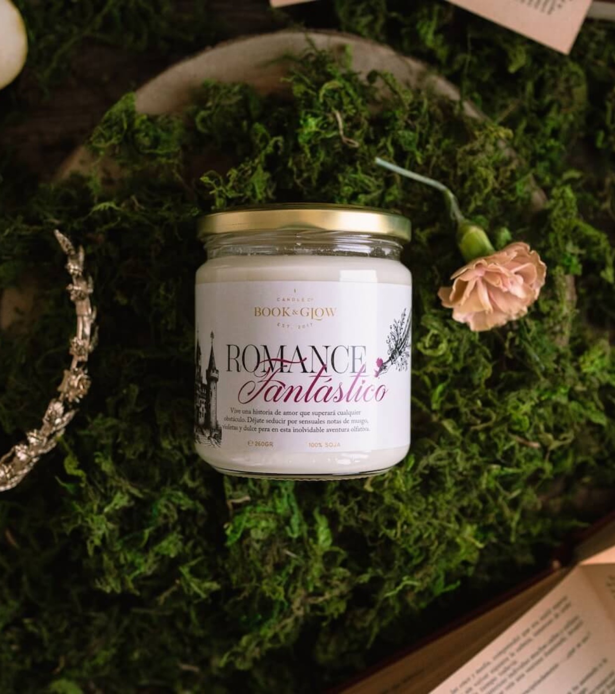 Fantastica candela di soia romantica Perfect Moments di Book and Glow.