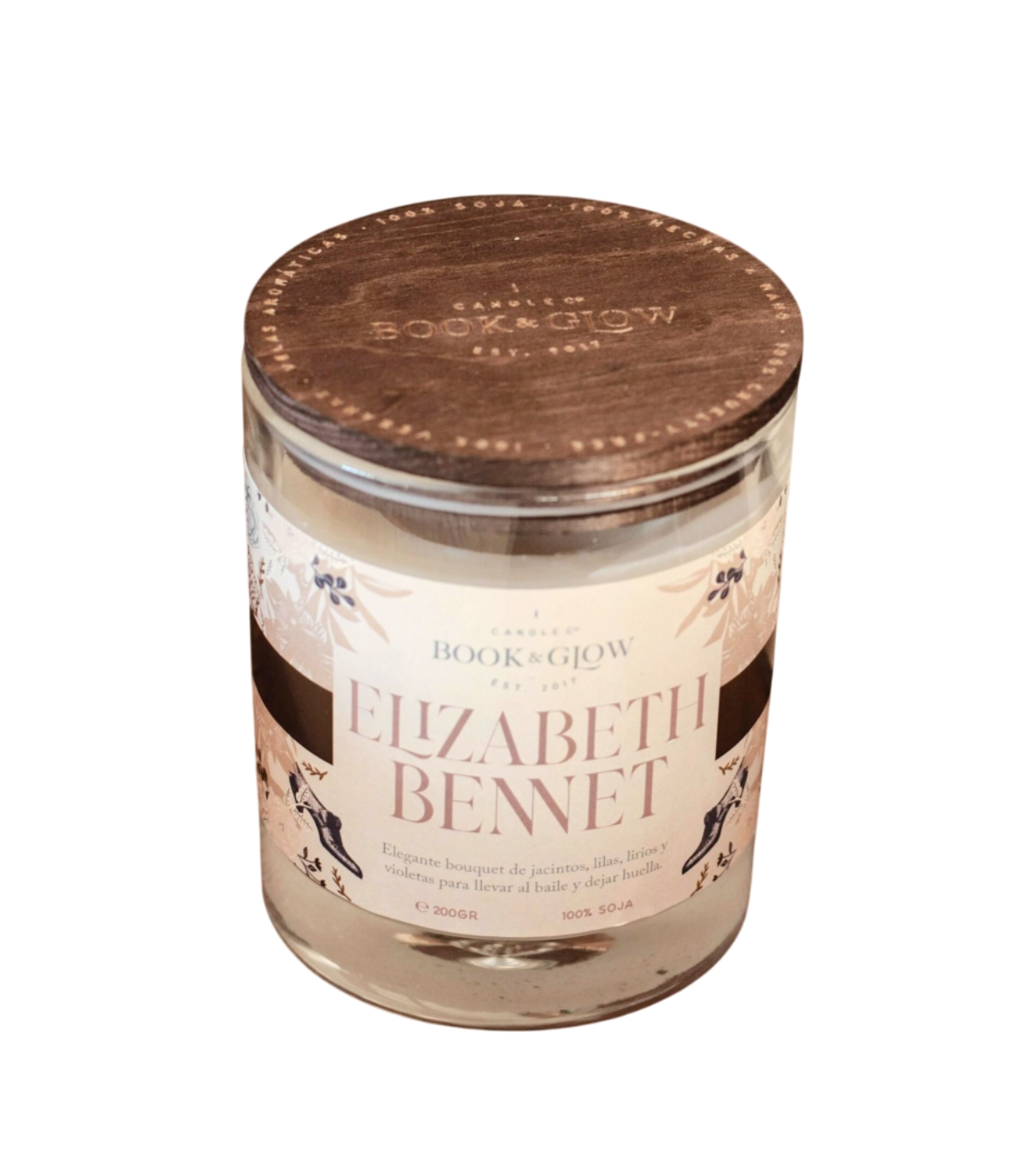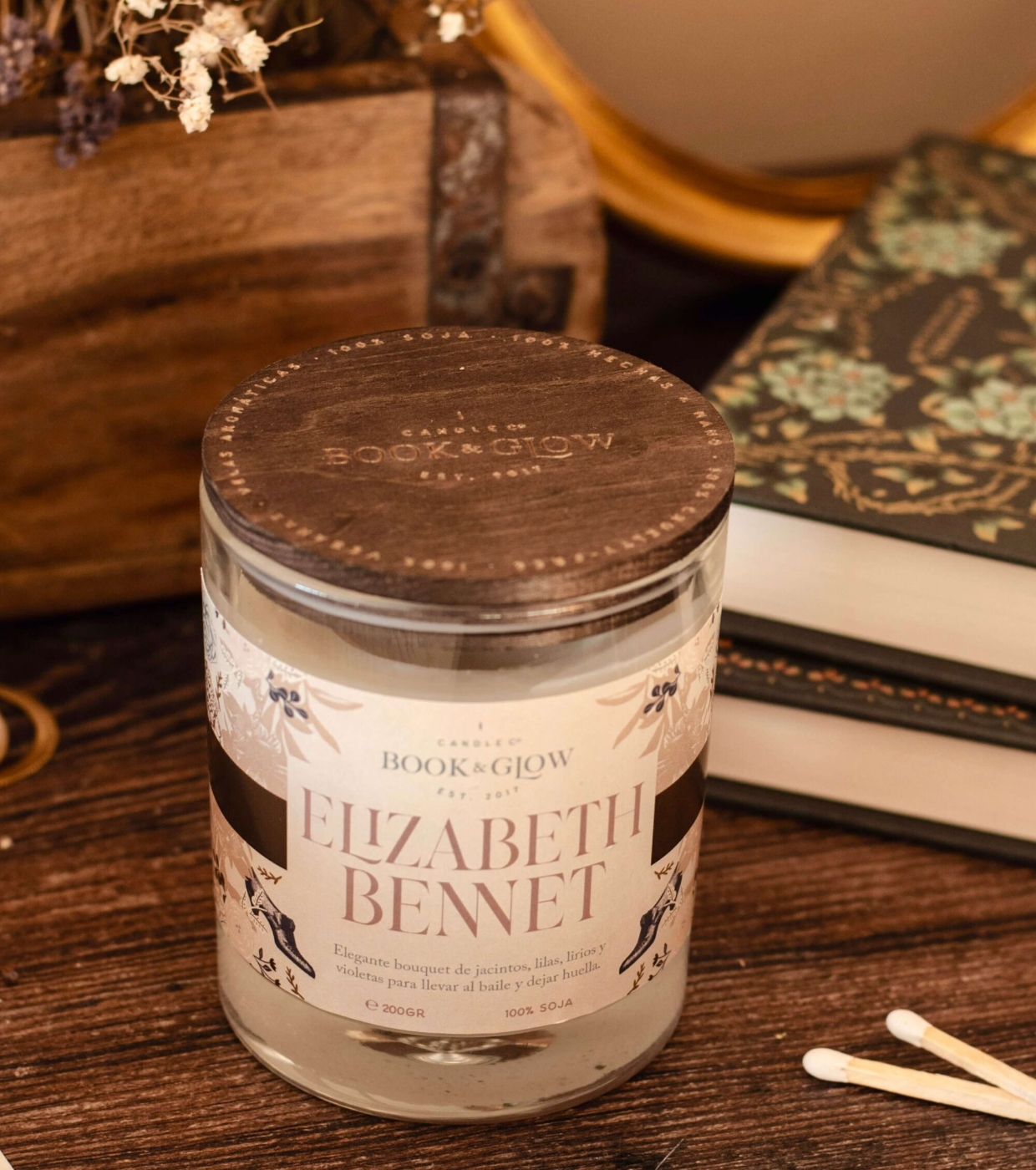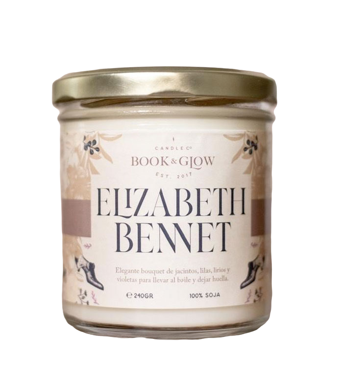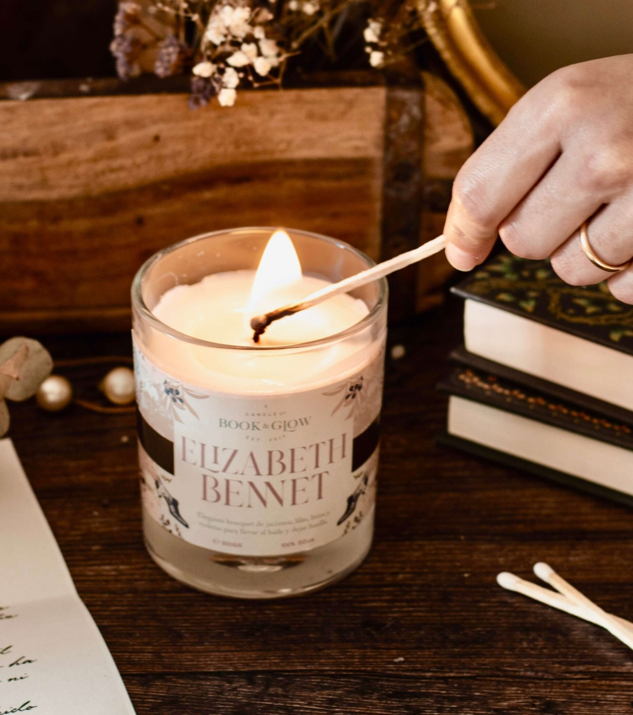 Candela di soia della collezione Extraordinary Worlds di Book and Glow. Elisabetta Bennet.