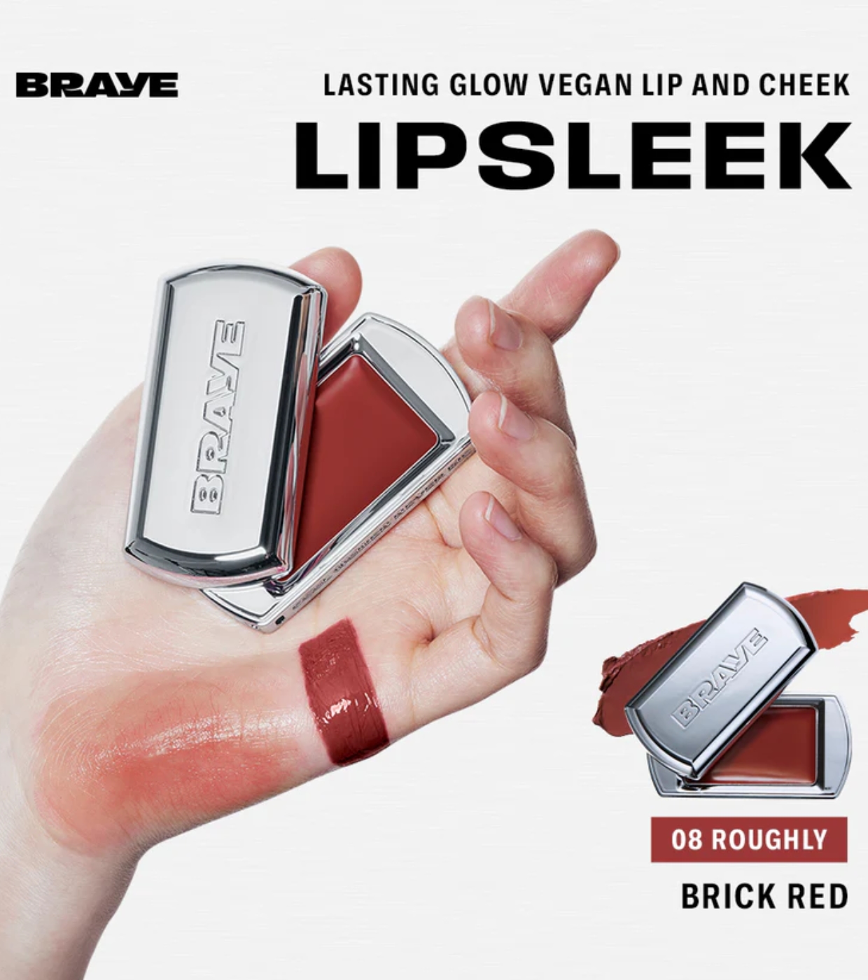 Lipsleek di BRAYE è un balsamo multifunzionale per labbra e guance che idrata in profondità e dona un colore morbido e modulabile con una finitura semi-opaca vellutata.