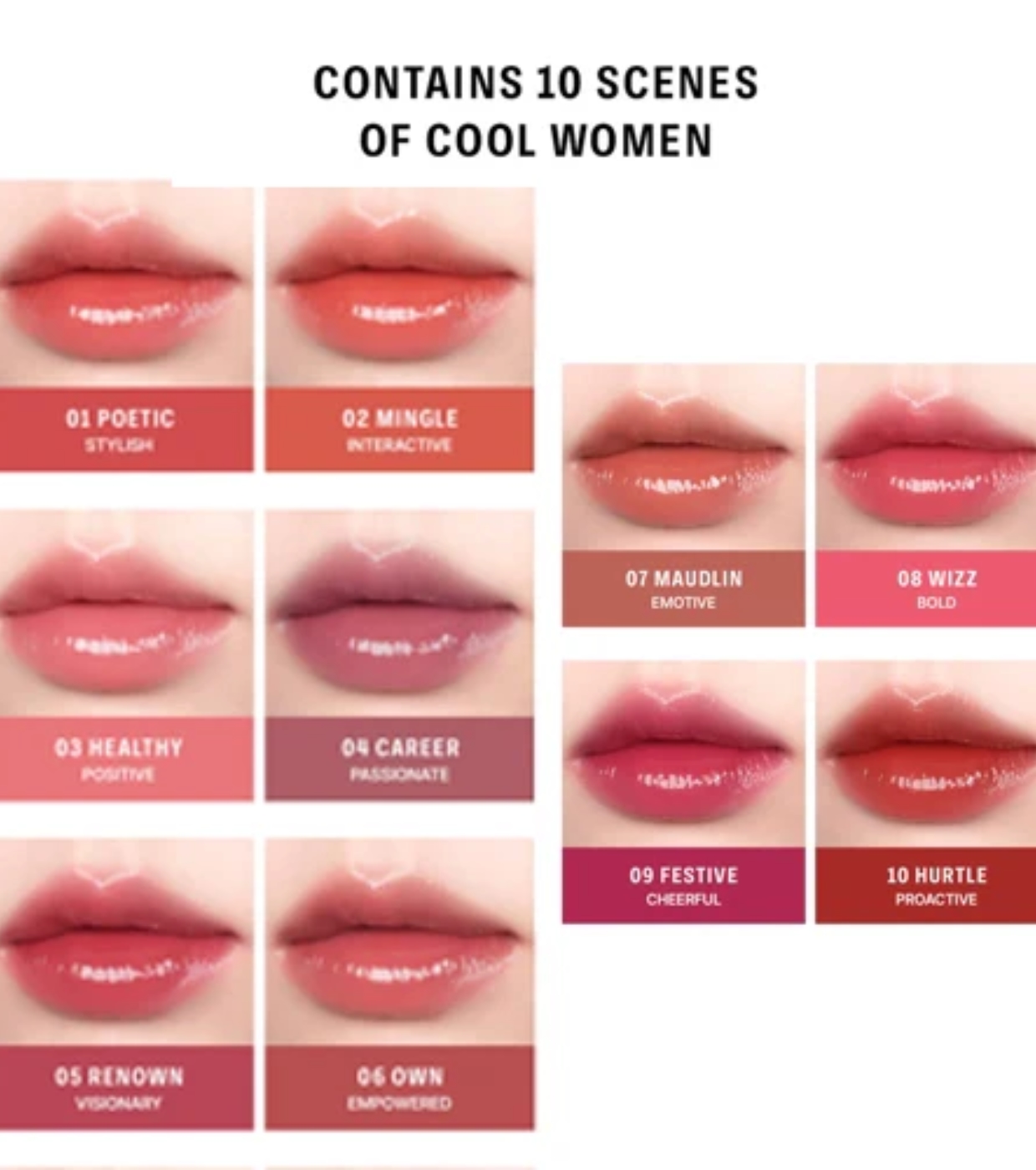 La sua tecnologia water-grip crea un film luminoso che aderisce delicatamente alle labbra senza seccarle né perdere intensità.