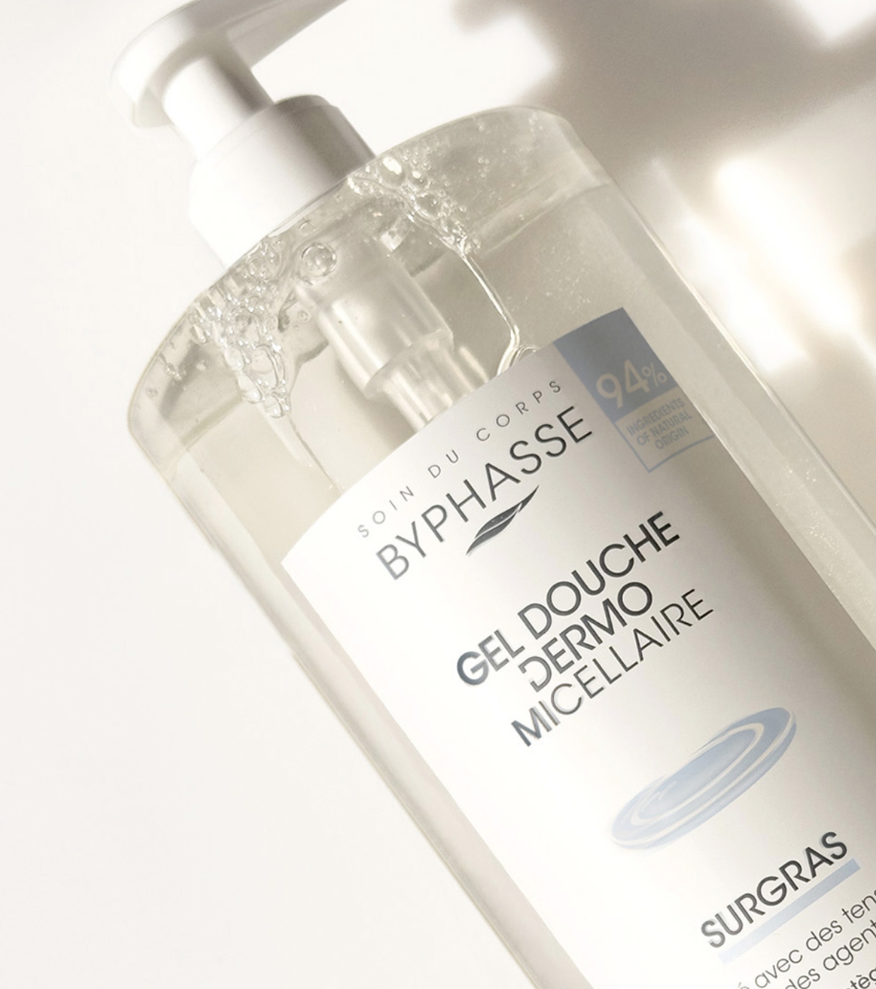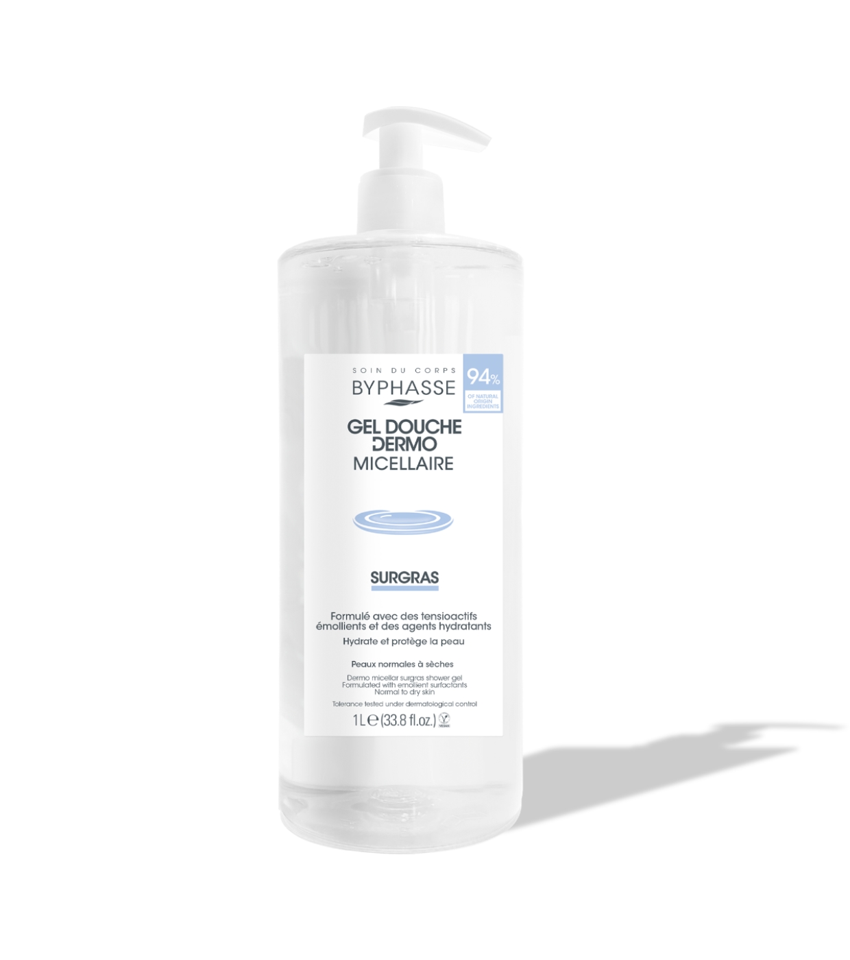 Il gel doccia Surgras di Byphasse è formulato con ingredienti delicati e un pH neutro che rispetta l'equilibrio naturale della pelle dopo ogni doccia.