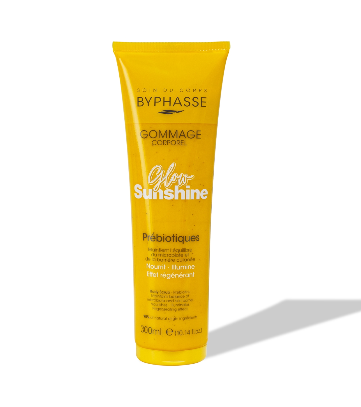 Lo scrub corpo Glow Sunshine di Byphasse lascia la pelle morbida e luminosa grazie alle particelle naturali di nocciolo di albicocca e pietra pomice, che rimuovono delicatamente le cellule morte della pelle senza irritarla.