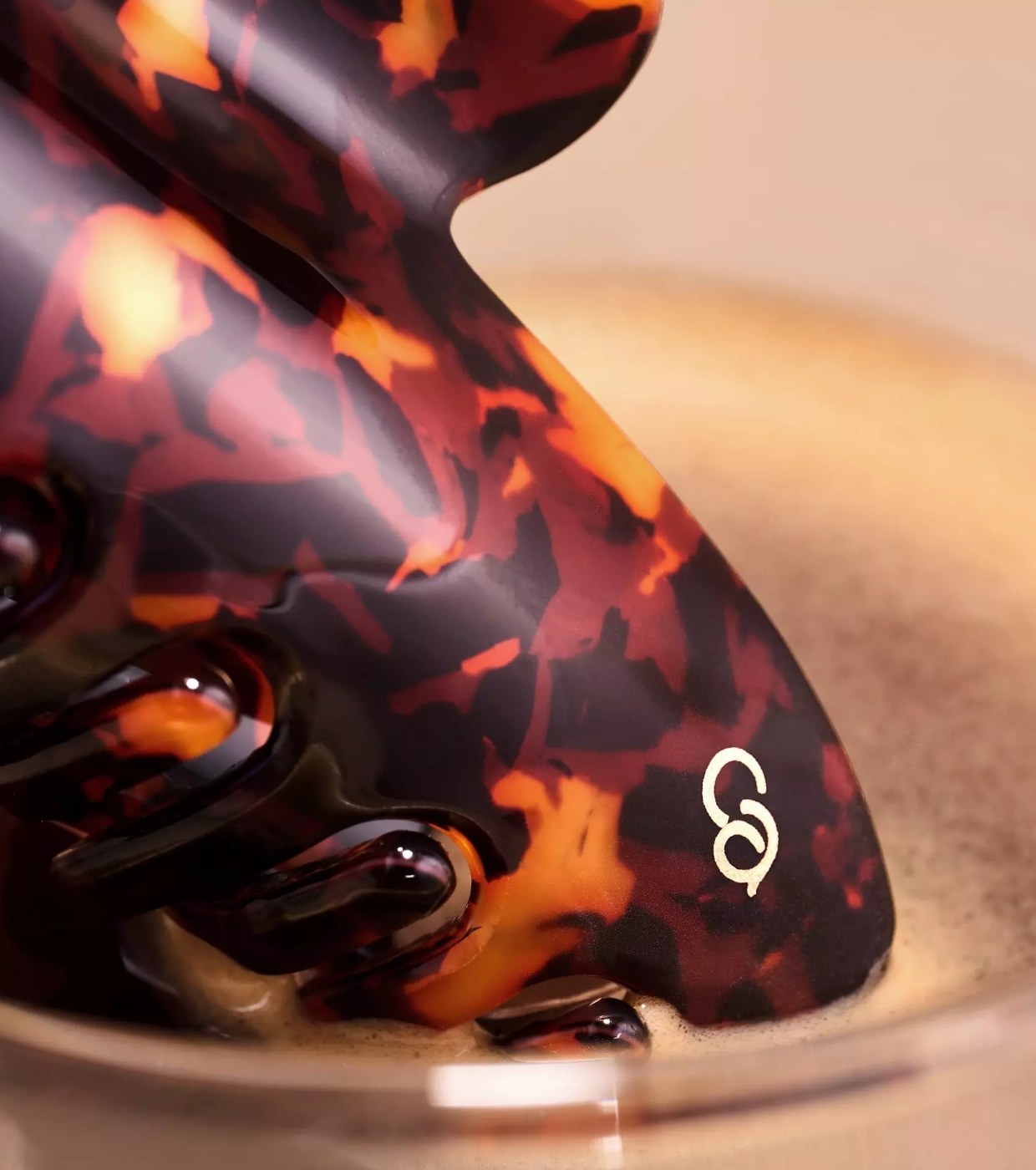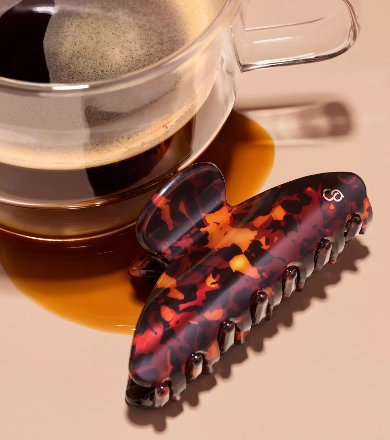 Ispirata alla morbidezza di un cappuccino e all'intensità dell'espresso, questa clip combina toni del marrone chiaro e scuro in una finitura marmorizzata lucida, perfetta per aggiungere un tocco di stile al tuo look quotidiano.