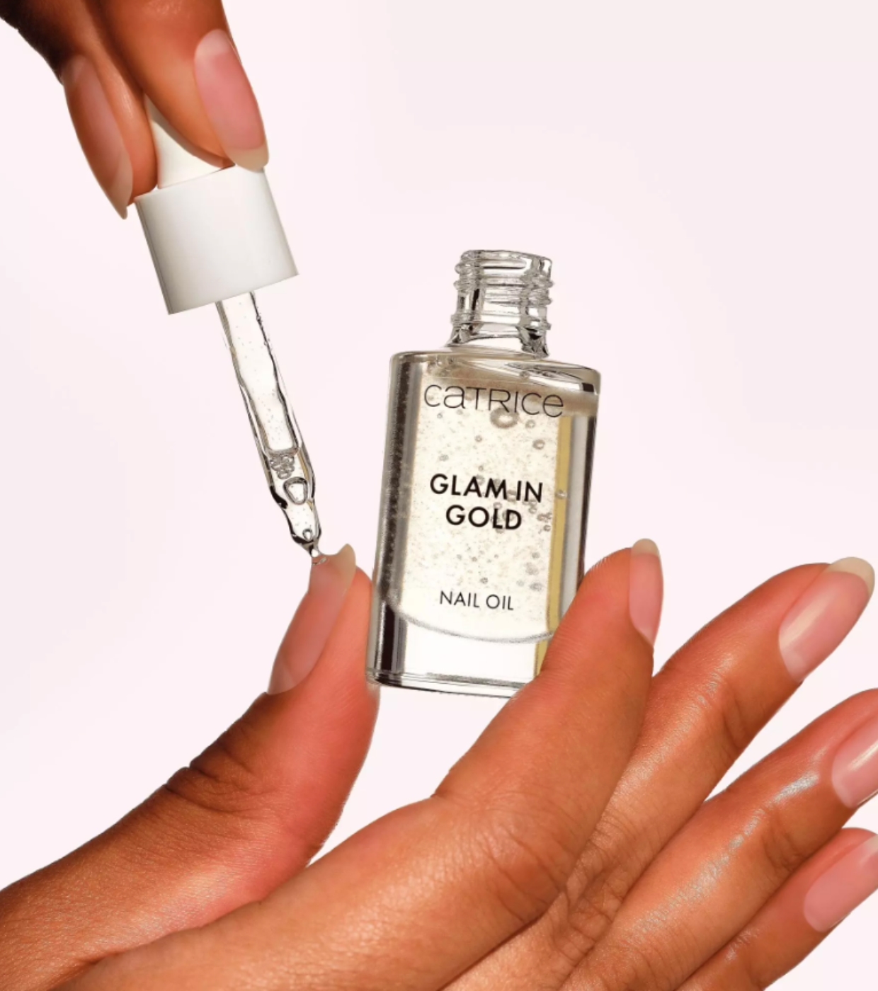 Coccola le tue unghie e cuticole con un tocco di lusso grazie all'olio per unghie Glam In Gold di Catrice .