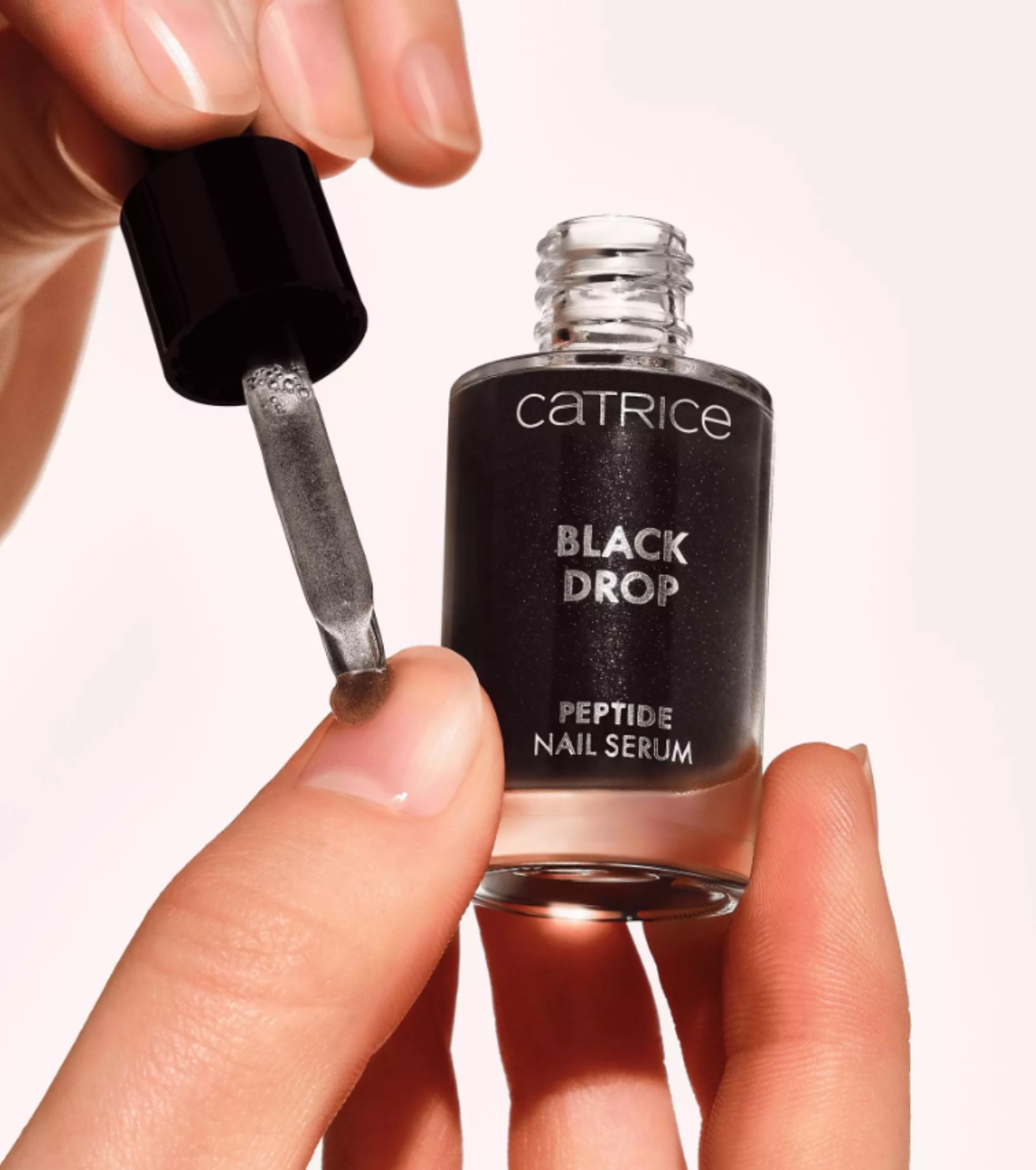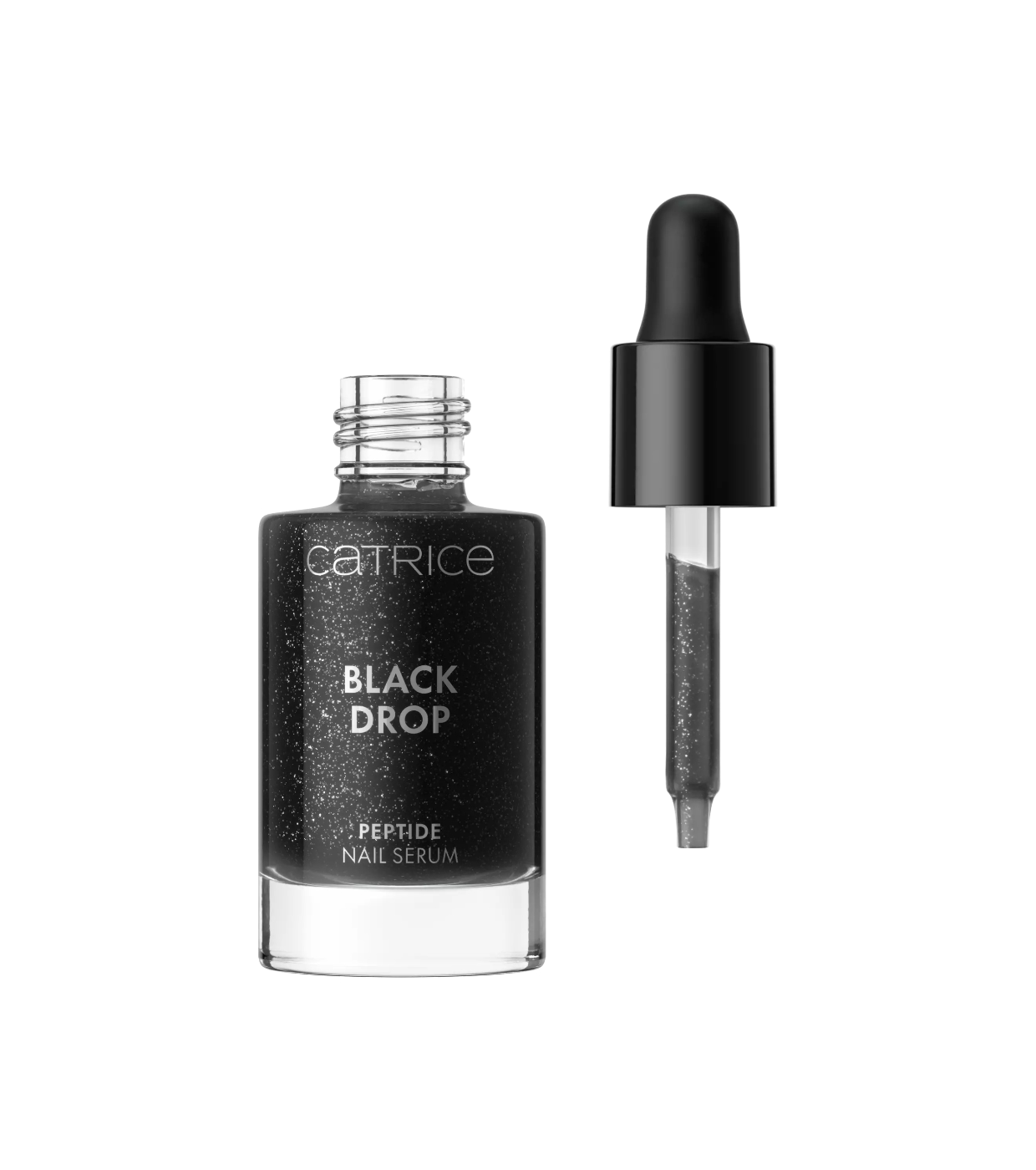 La bellezza incontra la cura con un tocco audace grazie al Black Drop Peptide Nail Serum di Catrice .