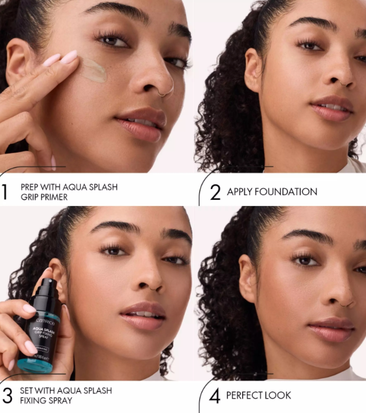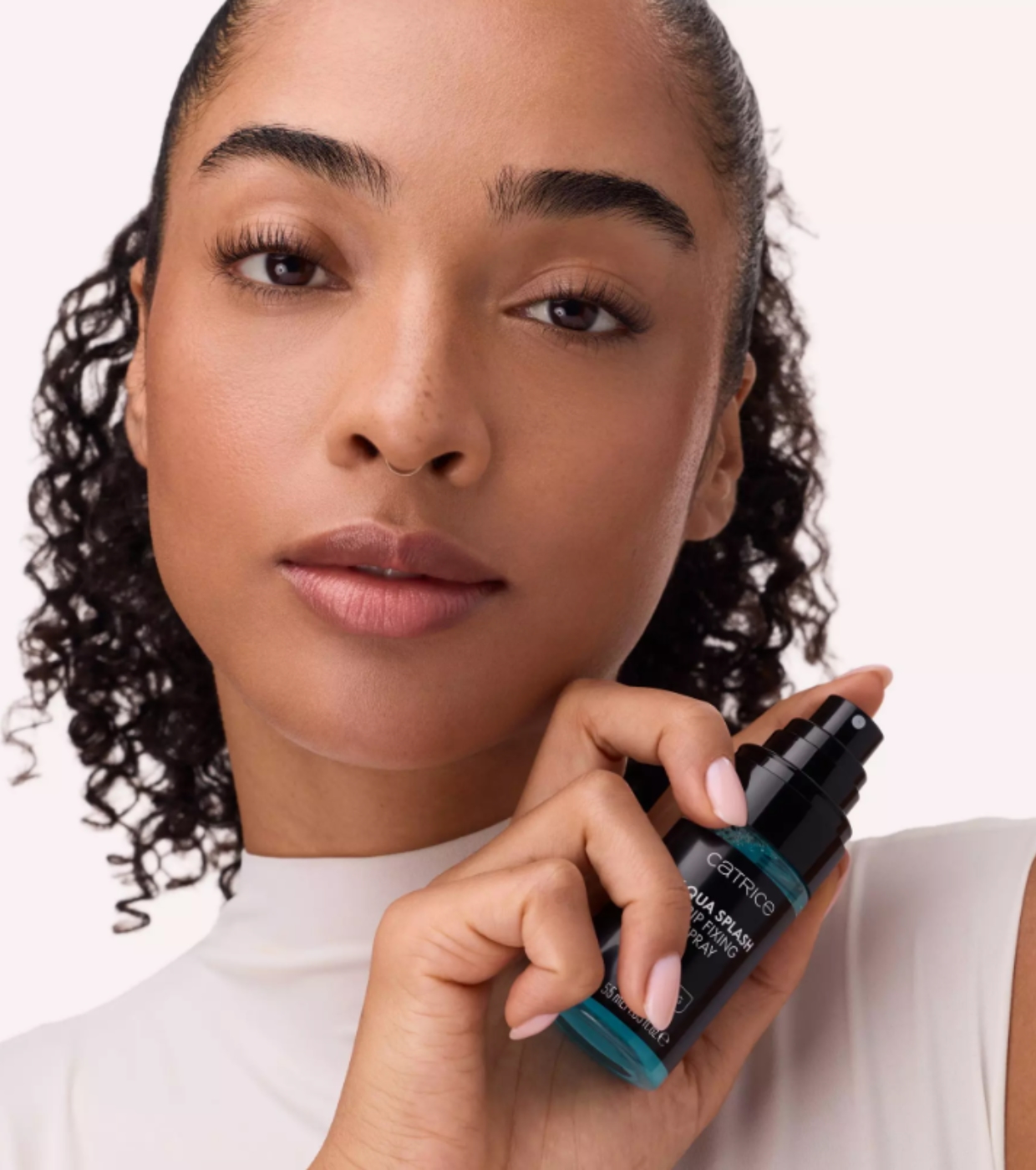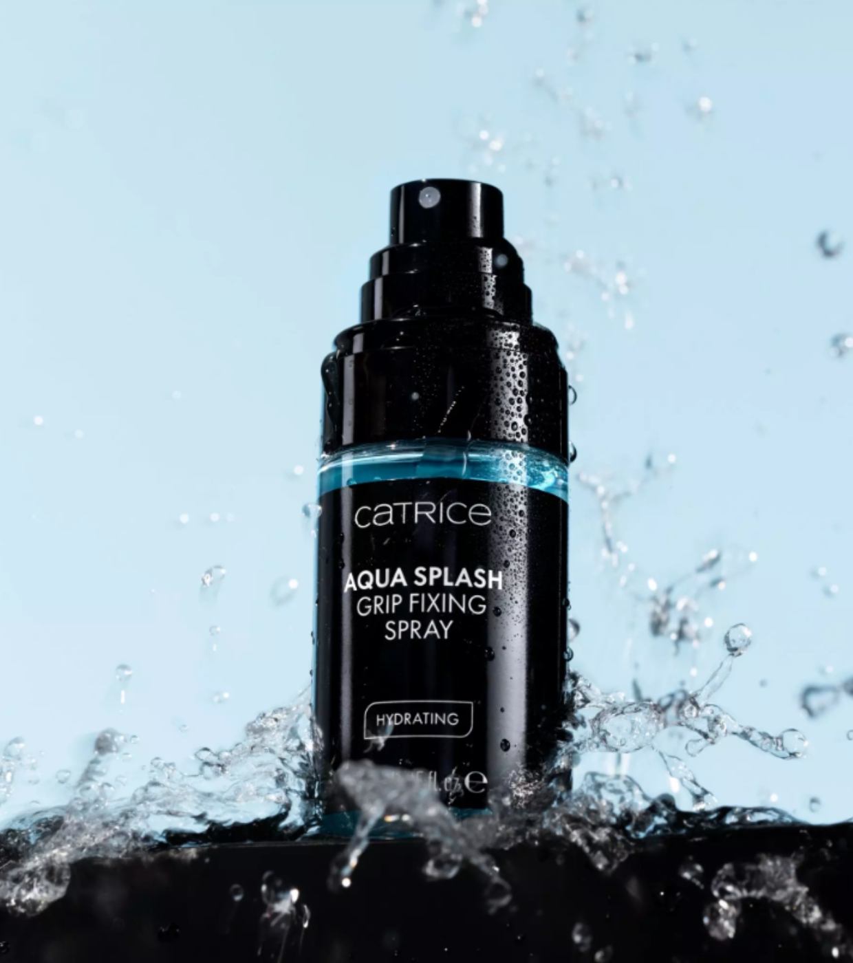 Fissa il tuo trucco con un tocco rinfrescante grazie allo spray fissante Aqua Splash Grip di Catrice .