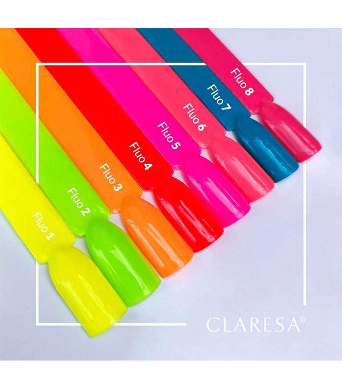 Gli smalti semipermanenti della linea Fluo di Claresa hanno colori vivaci pieni di energia che ci ispirano a goderci il sole con una manicure che non passerà inosservata.