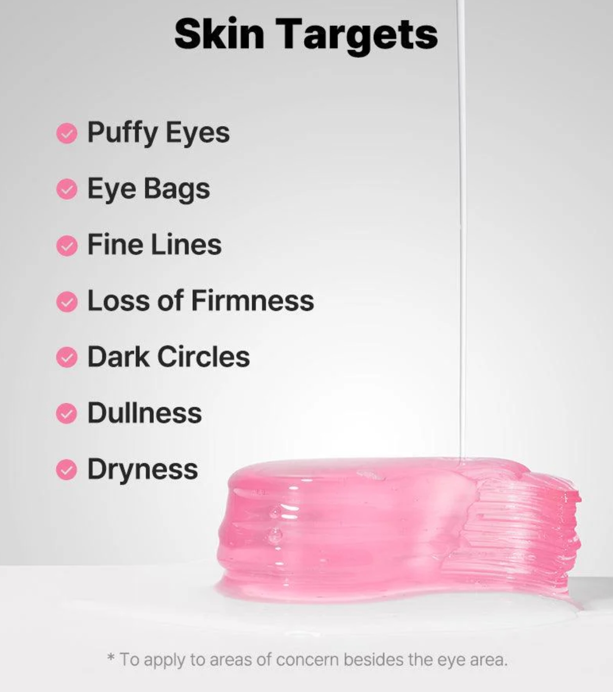 Water, Dipropylene Glycol, Glycerin, Niacinamide, Ceratonia Siliqua (Carob) Gum, Chondrus Crispus Powder, Chondrus Crispus, Cellulose Gum, Hydroxyacetophenone, Algin, Caprylyl Glycol, Potassium Chloride, Betaine, Panthenol, Sucrose, Ethylhexylglycerin, Sodium Polyacrylate Polyglyceryl-10 Laurate, Adenosine, Polyglyceryl-10 Myristate, Maltodextrin, Caffeine, Collagen, Butylene Glycol, Cyanocobalamin, 1,2-Hexanediol, Sodium Hyaluronate, Dipotassium Glycyrrhizate, Pantolactone, Pentylene Glycol, Acetyl Hexapeptide-8, Dunaliella Salina Extract, shPolypeptide-121, Palmitoyl Tripeptide-5, Hydrolyzed Hyaluronic Acid, Hyaluronic Acid, Potassium Hyaluronate, Hydrolyzed Sodium Hyaluronate, Acetyl Tetrapeptide-5, Citric Acid, Disodium EDTA