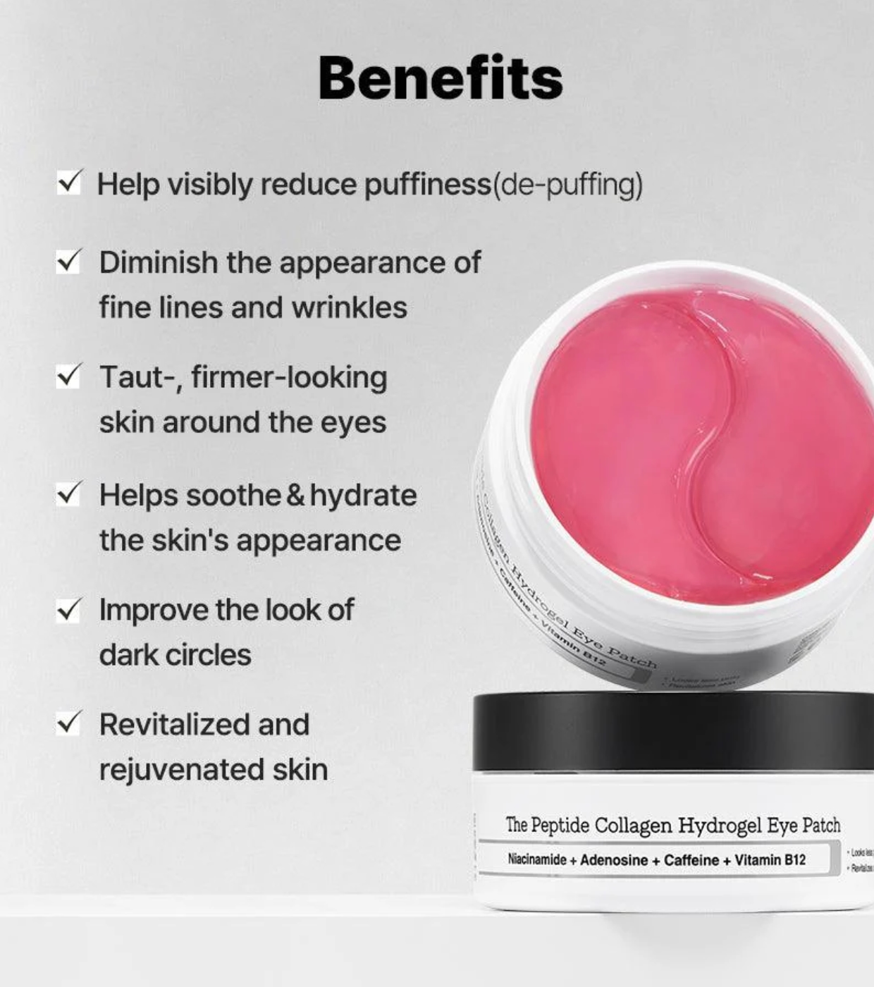 Questi innovativi cerotti sono formulati con un potente complesso di peptidi e collagene, due ingredienti chiave per contrastare i segni dell'invecchiamento, ridurre il gonfiore e fornire un'idratazione profonda e duratura.