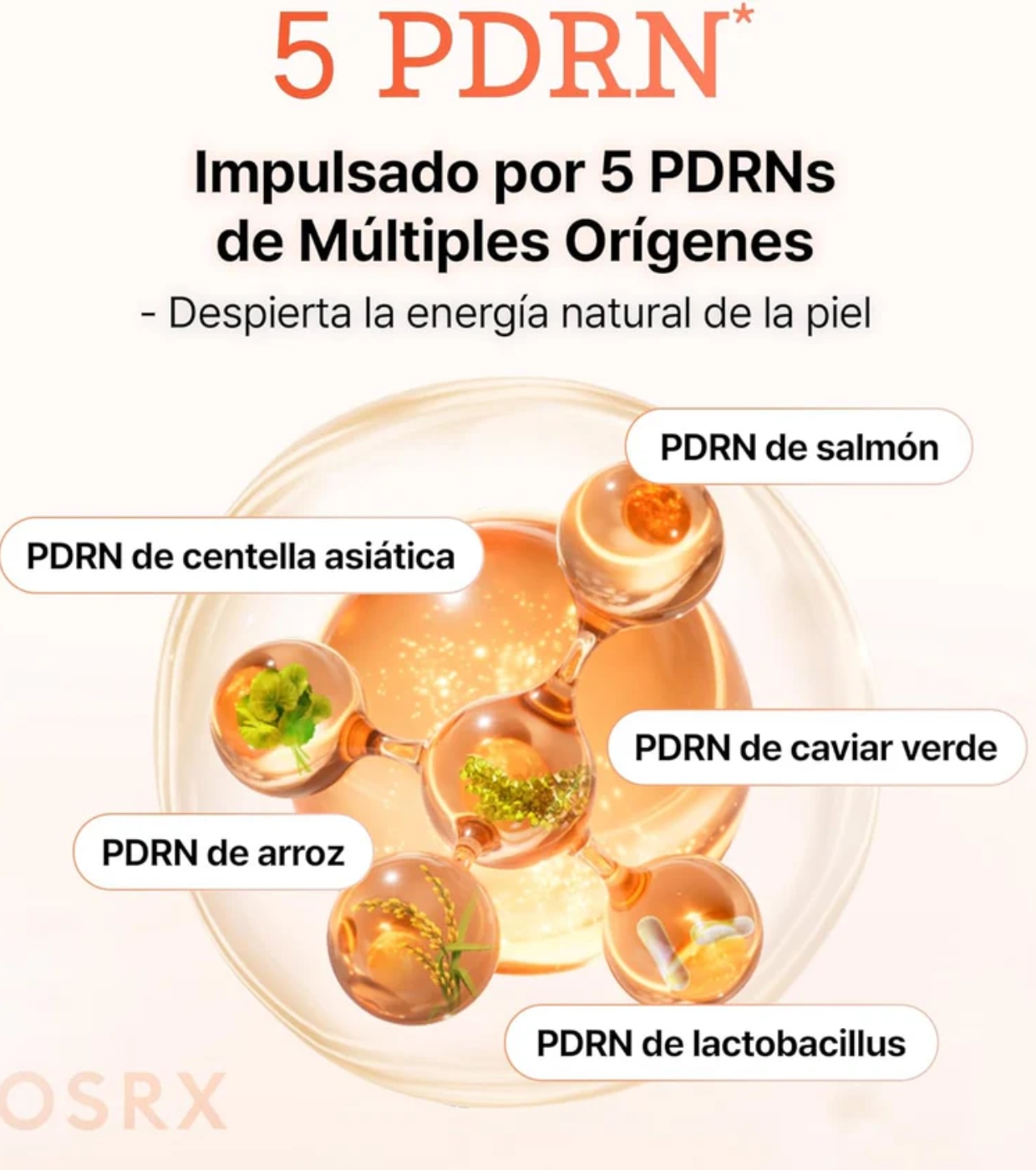 Contiene 5 tipi di PDRN (derivati di salmone, centella asiatica, riso, lattobacilli e uva di mare), noti per la loro capacità di stimolare la rigenerazione cutanea, migliorare l'elasticità e contribuire a ridurre i segni dell'invecchiamento.