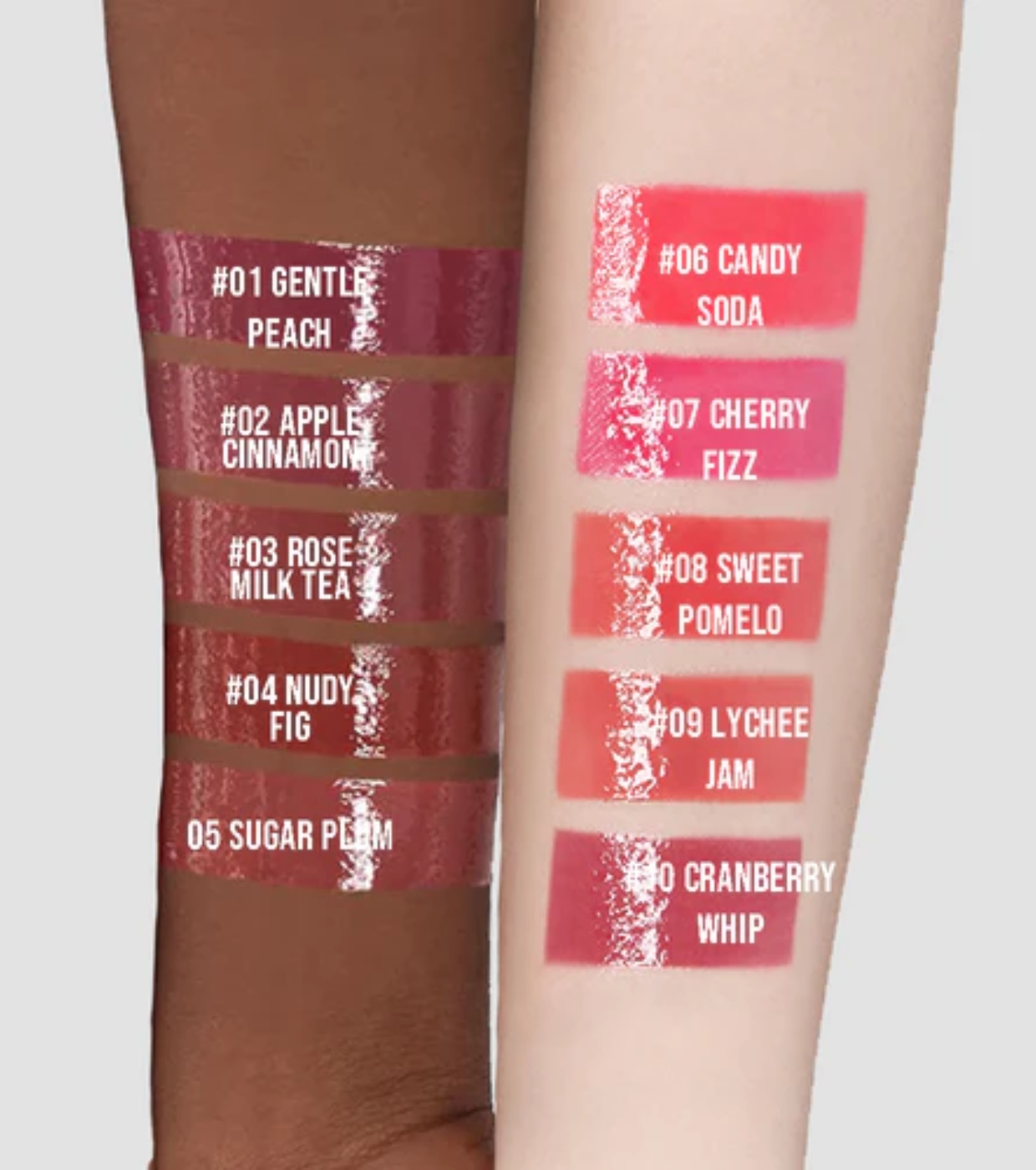 Il suo innovativo sistema gelificante ibrido crea una texture fondente e liscia che scivola facilmente sulle labbra, donando una finitura lucida e succosa senza rigidità né pesantezza.