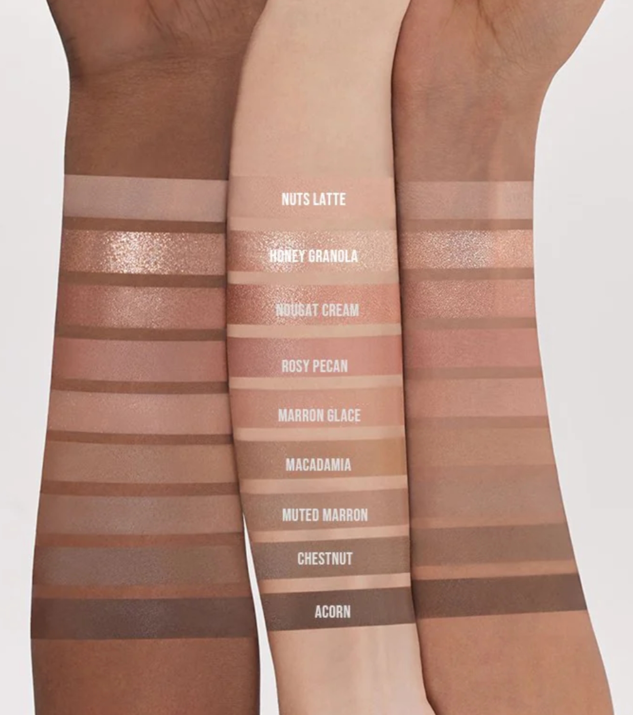Ogni tonalità cattura l'essenza di mandorle, nocciole e noci pecan, creando una gamma perfetta per valorizzare lo sguardo con sfumature calde e avvolgenti.