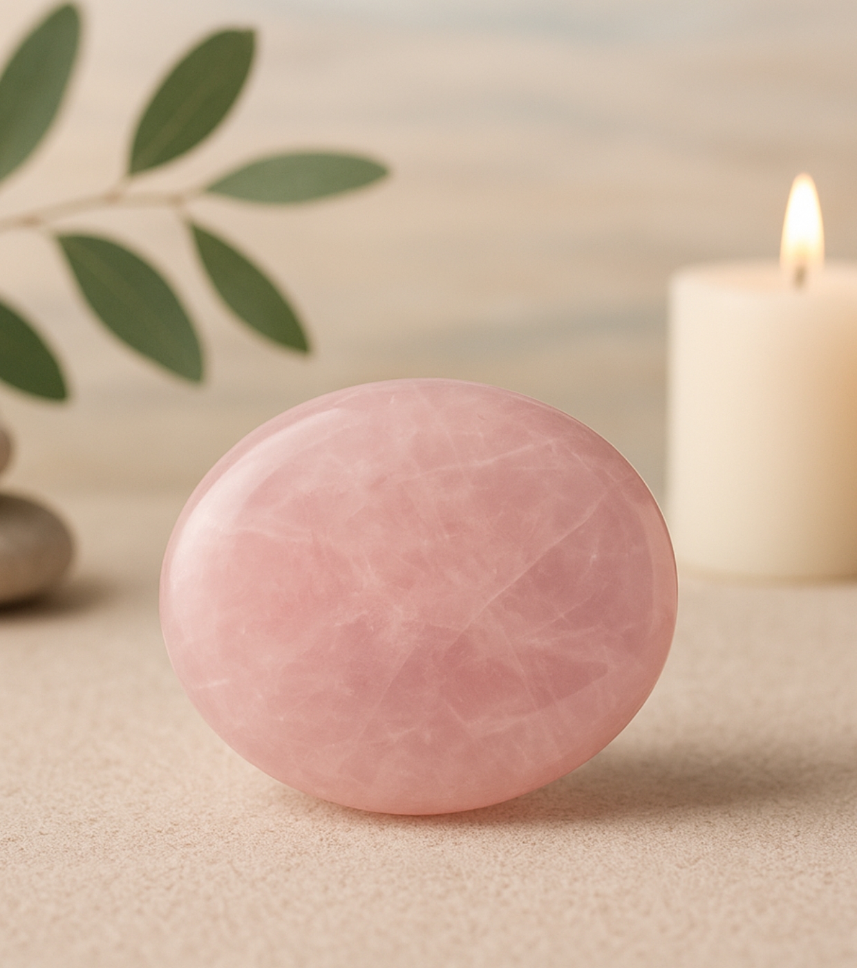 Il quarzo rosa è tradizionalmente associato all'amor proprio, alla pace interiore e alla calma emotiva, rendendo questa pietra un simbolo di cura di sé e di connessione personale.