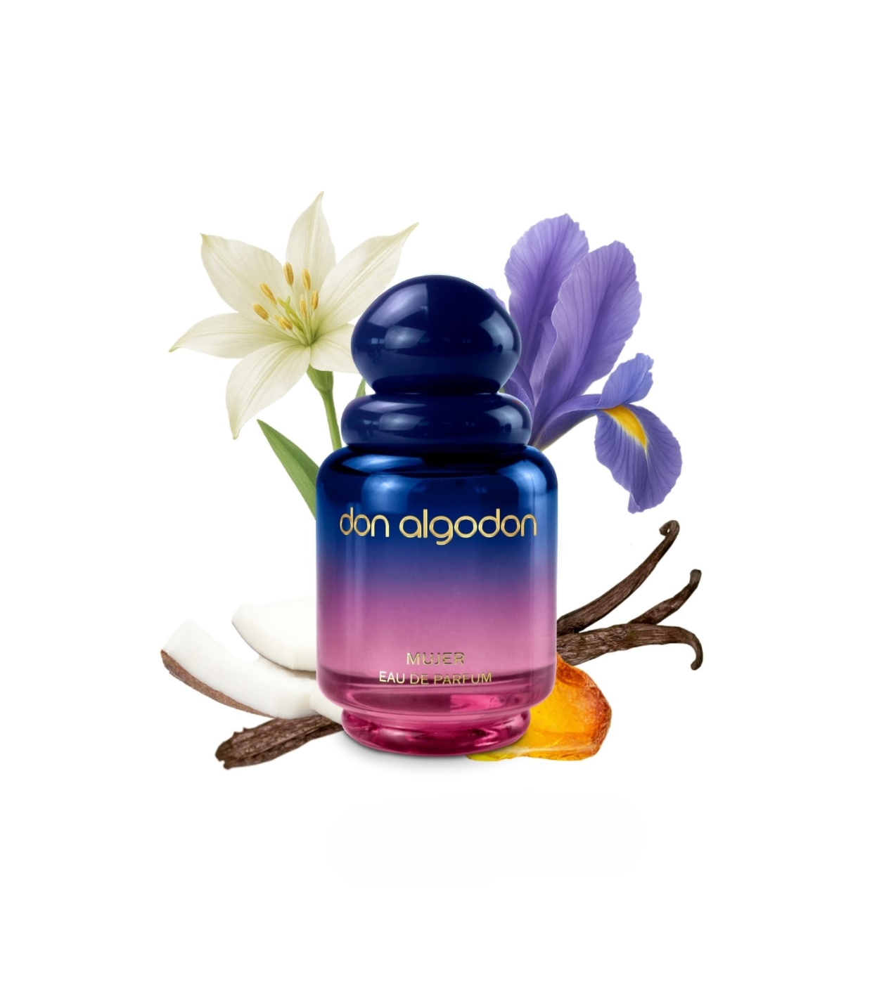 Scopri il set Eau de parfum 100ml + 30ml Mujer di Don Algodón, una fragranza che sboccia con forza e delicatezza, come un fiore nel deserto.