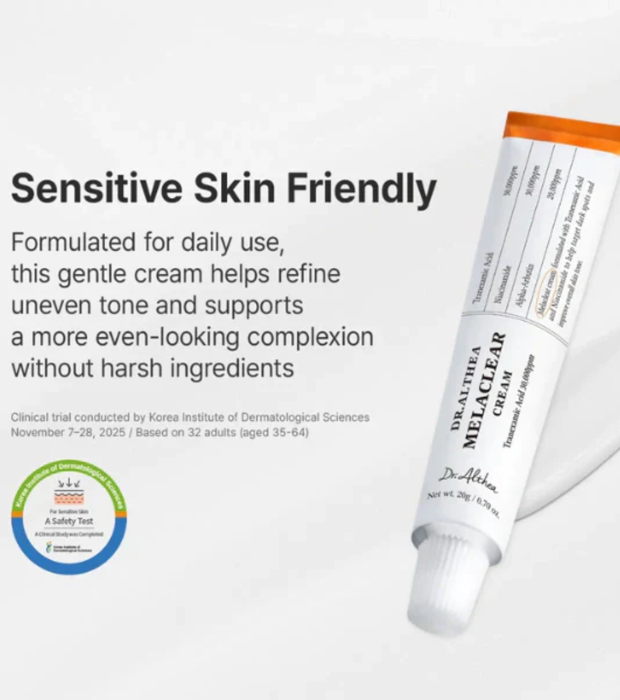 La crema Melaclear della Dott.ssa Althea è un trattamento depigmentante studiato per contrastare macchie, discromie e colorito spento, senza compromettere la barriera cutanea, nemmeno sulle pelli sensibili.