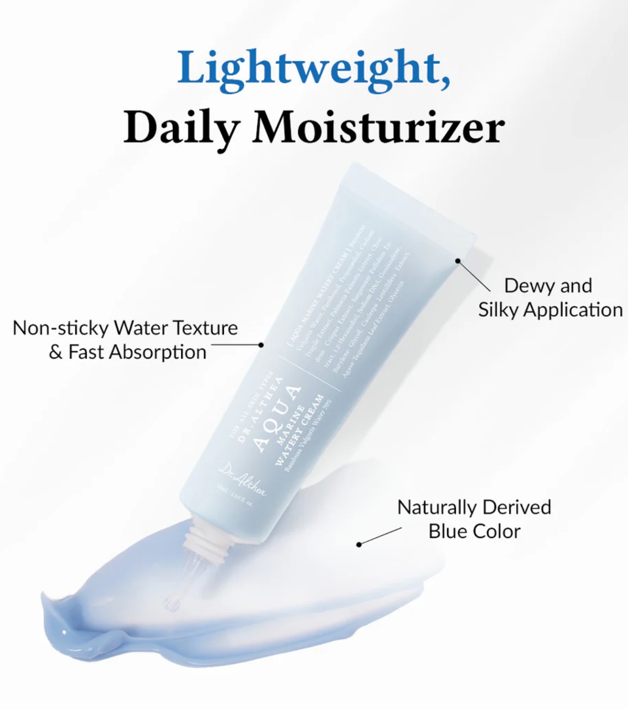 Prova un'idratazione immediata, fresca e rivitalizzante fin dalla prima applicazione con Dr. Althea Aqua Marine Watery Cream , una crema viso ultraleggera, simile all'acqua, che si assorbe rapidamente e lascia la pelle morbida, equilibrata e profondamente idratata, senza appesantirla.