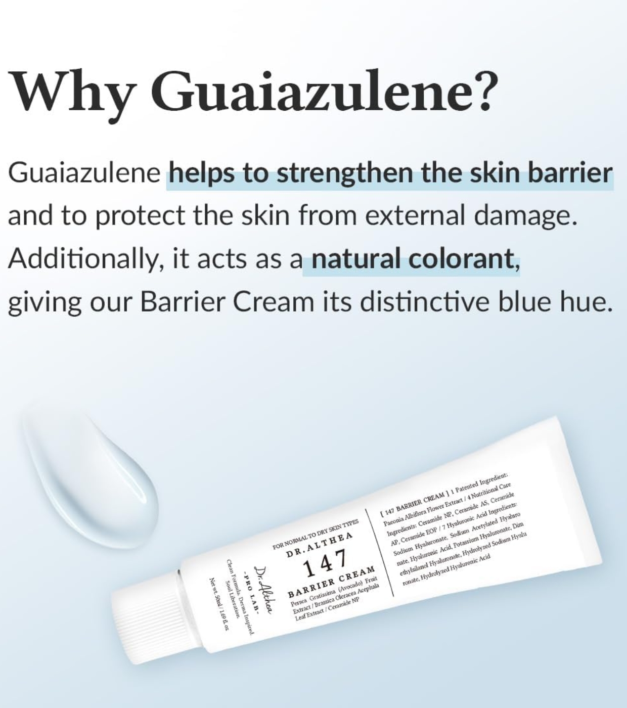 Crema lenitiva intensiva Azulene 147HA di Dr. Althea , formulato con azulene, derivato dall'olio di fiori di camomilla, per lenire e idratare la pelle.