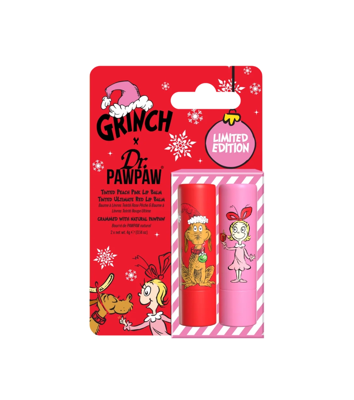 Chissa' chi è più cattivo che mai! Scopri il Grinch x Dr.PAWPAW Tinted Duo, un divertente duo di balsami labbra colorati pensato per donare idratazione, morbidezza e un tocco di colore natalizio alle tue labbra.