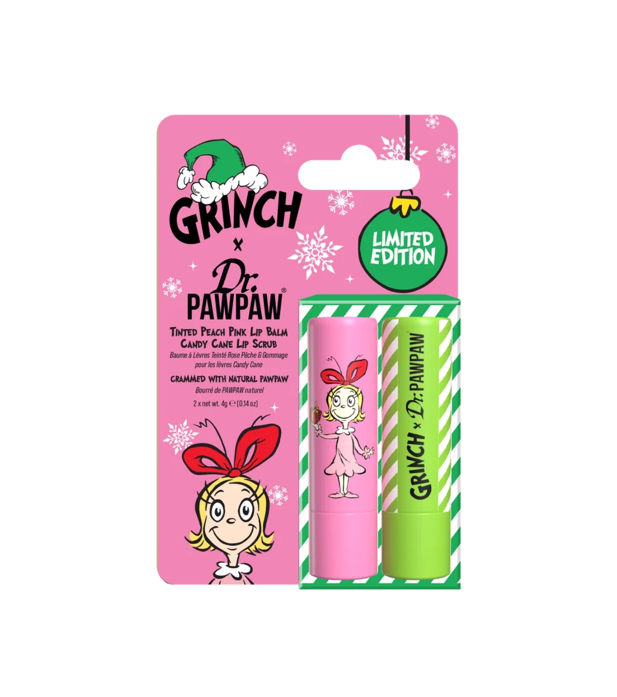 Whoville presenta il duo più malizioso e delizioso della stagione: il Grinch x Dr.PAWPAW Whoville Duo, un set essenziale che unisce colore, esfoliazione e idratazione per labbra morbide e vivaci.