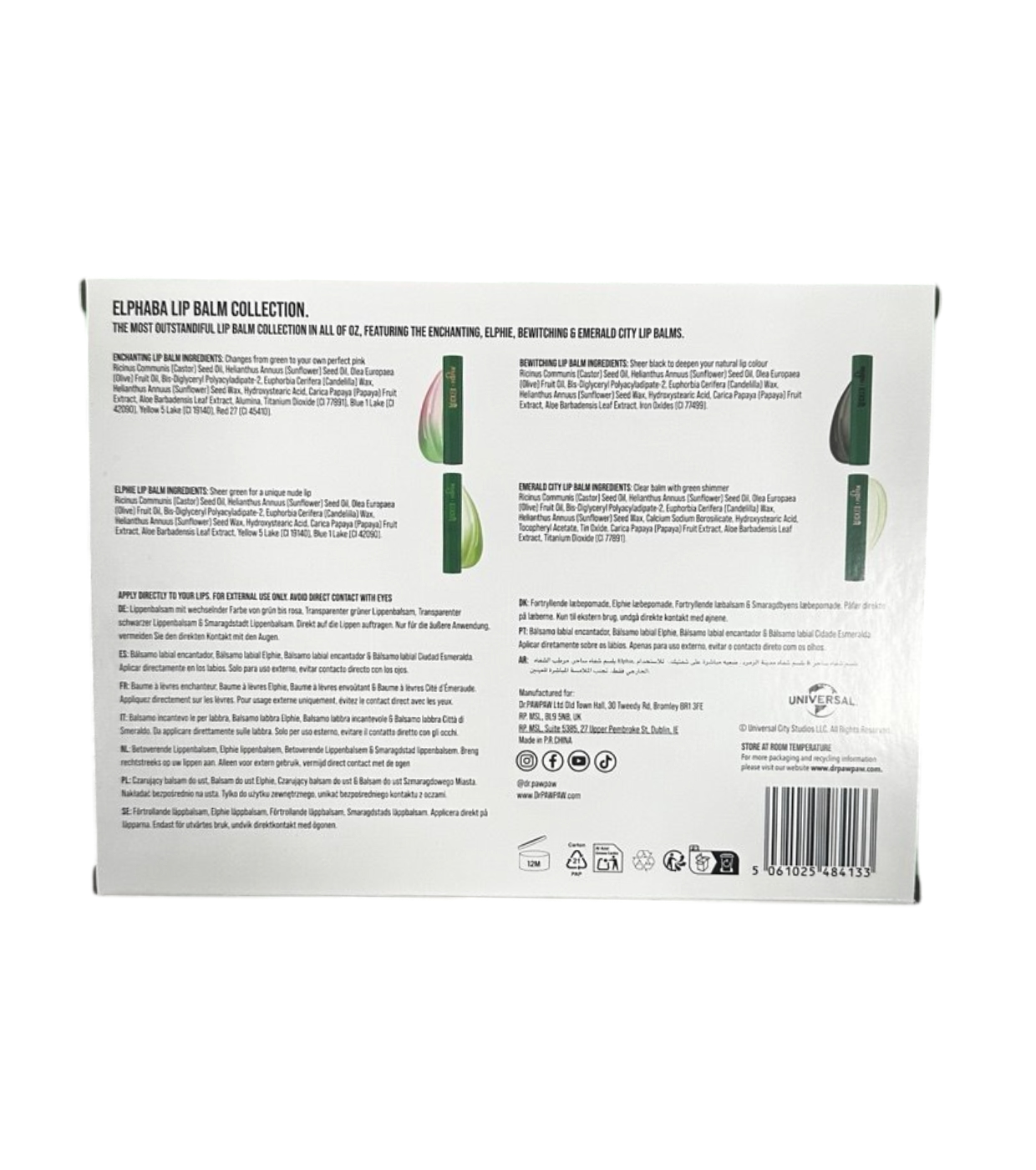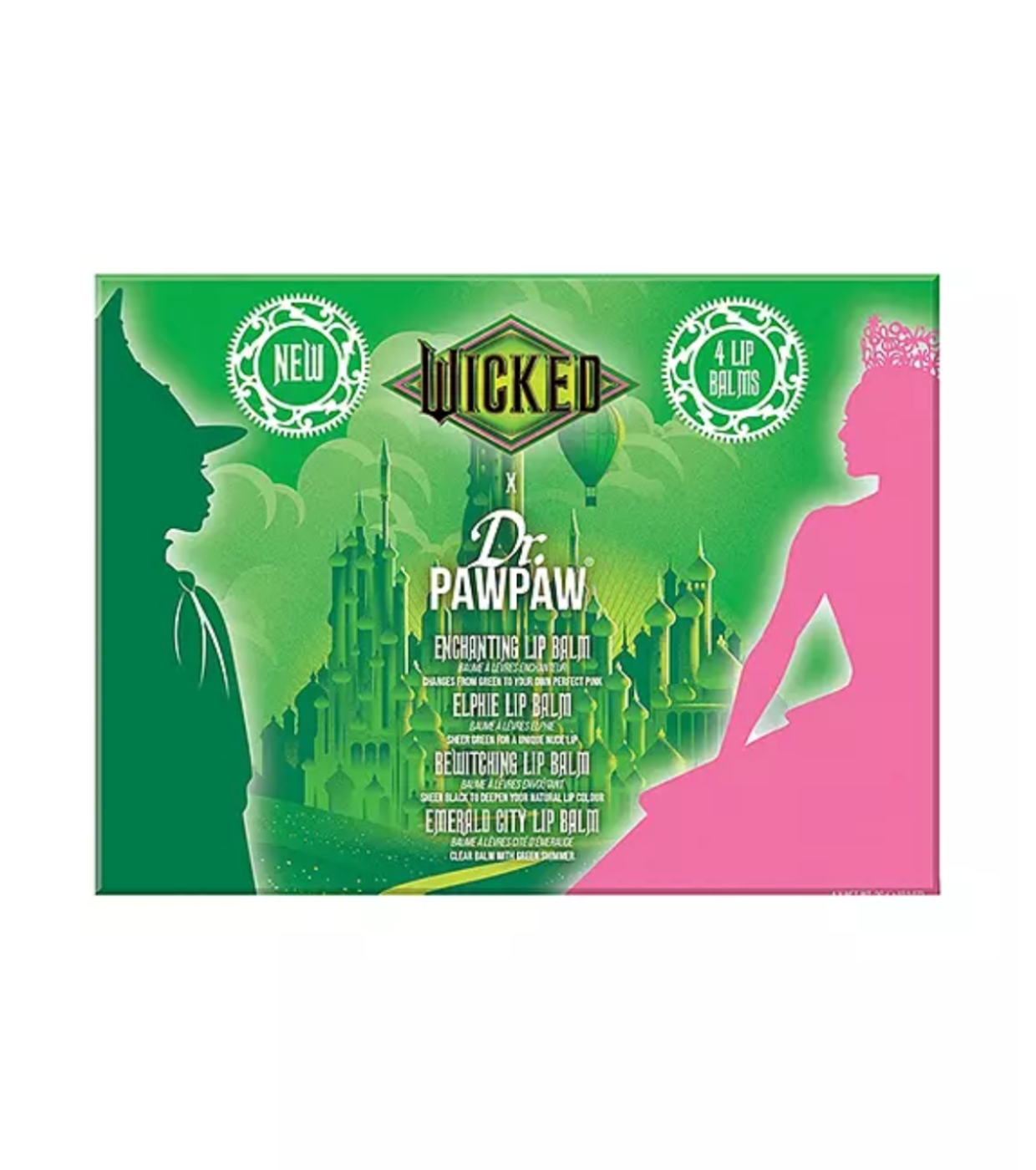 Entra nell'universo di Oz con la Elphaba Lip Balm Collection di Wicked x Dr.PAWPAW , una collezione unica che riunisce 4 balsami per le labbra ispirati all'iconico ciondolo verde di Elphaba.
