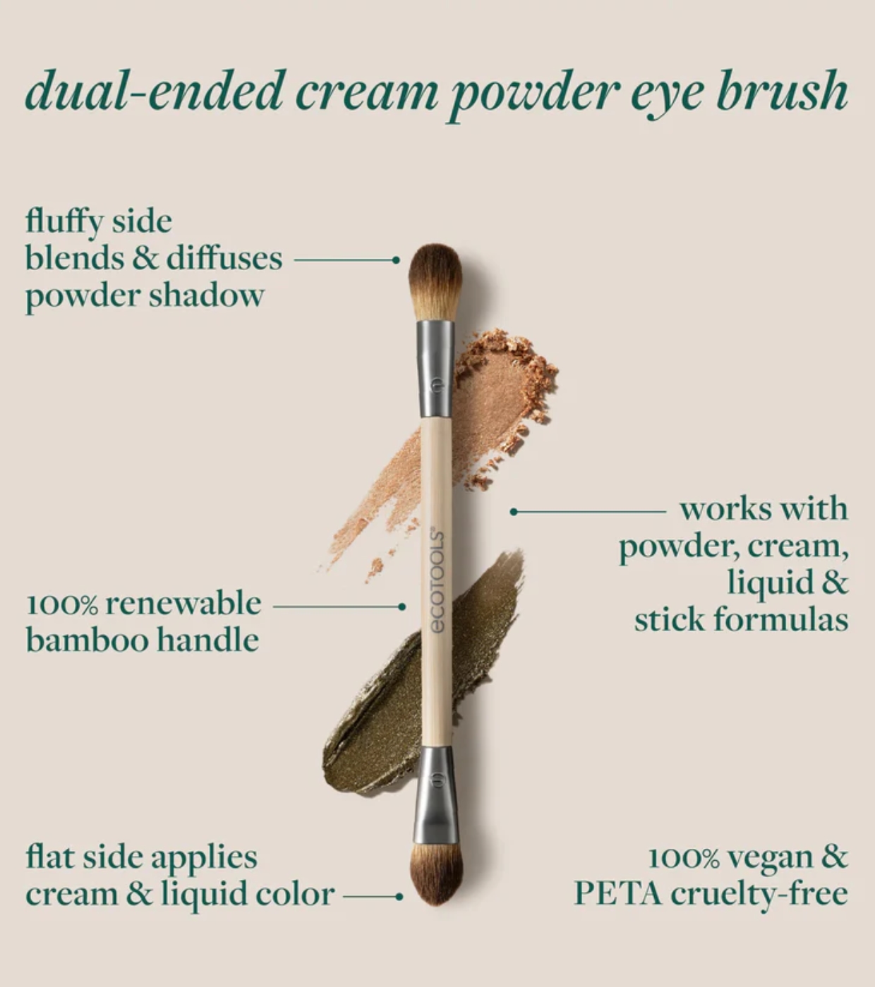 Il pennello Cream & Powder Dual-Ended di EcoTools è un versatile strumento 2 in 1 progettato per applicare e sfumare gli ombretti con precisione e facilità.