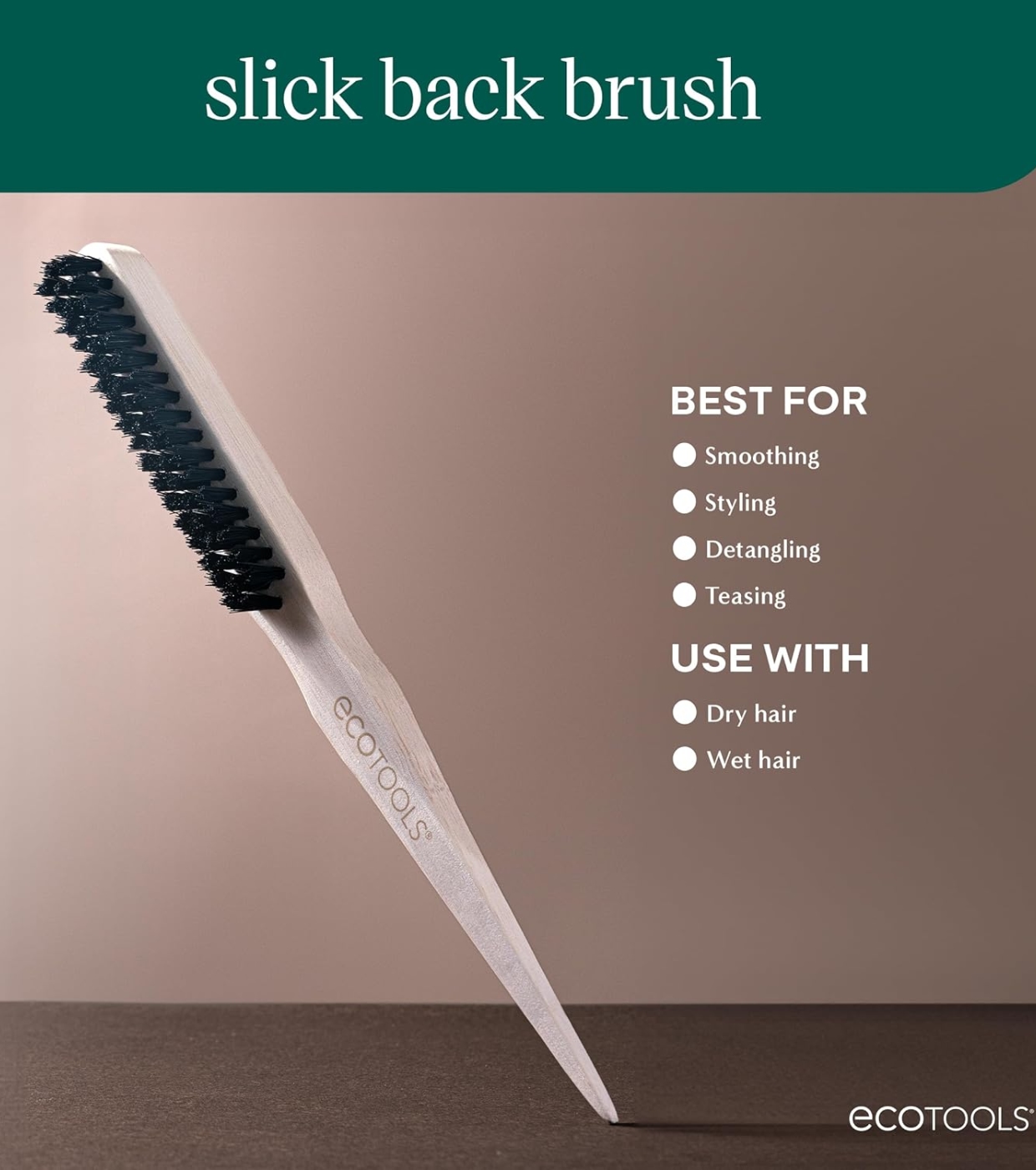 La spazzola EcoTools Slick Back Brush è la spazzola ideale per realizzare chignon ordinati, acconciature raccolte e acconciature perfettamente definite.