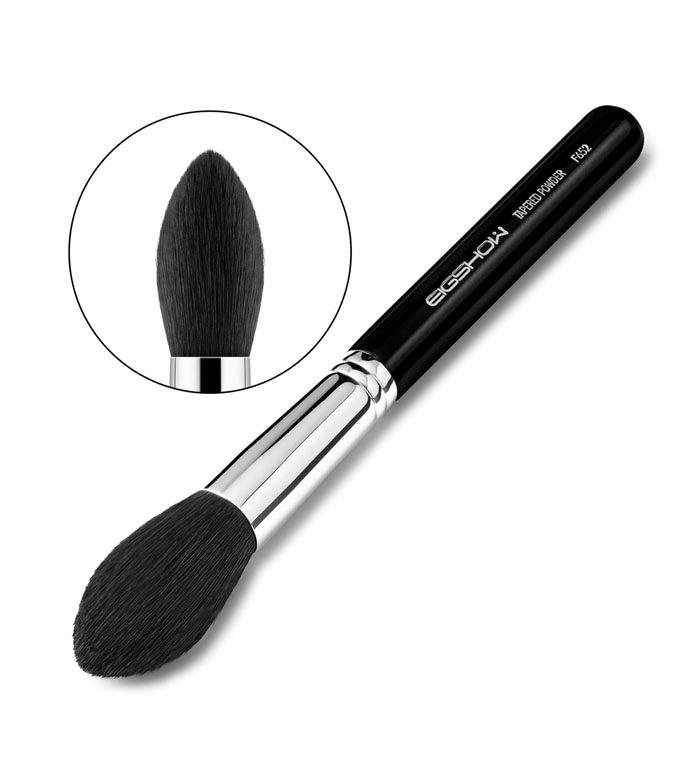La forma conica di questo pennello per cipria Eigshow consente un'applicazione precisa dei prodotti in polvere sulla pelle.