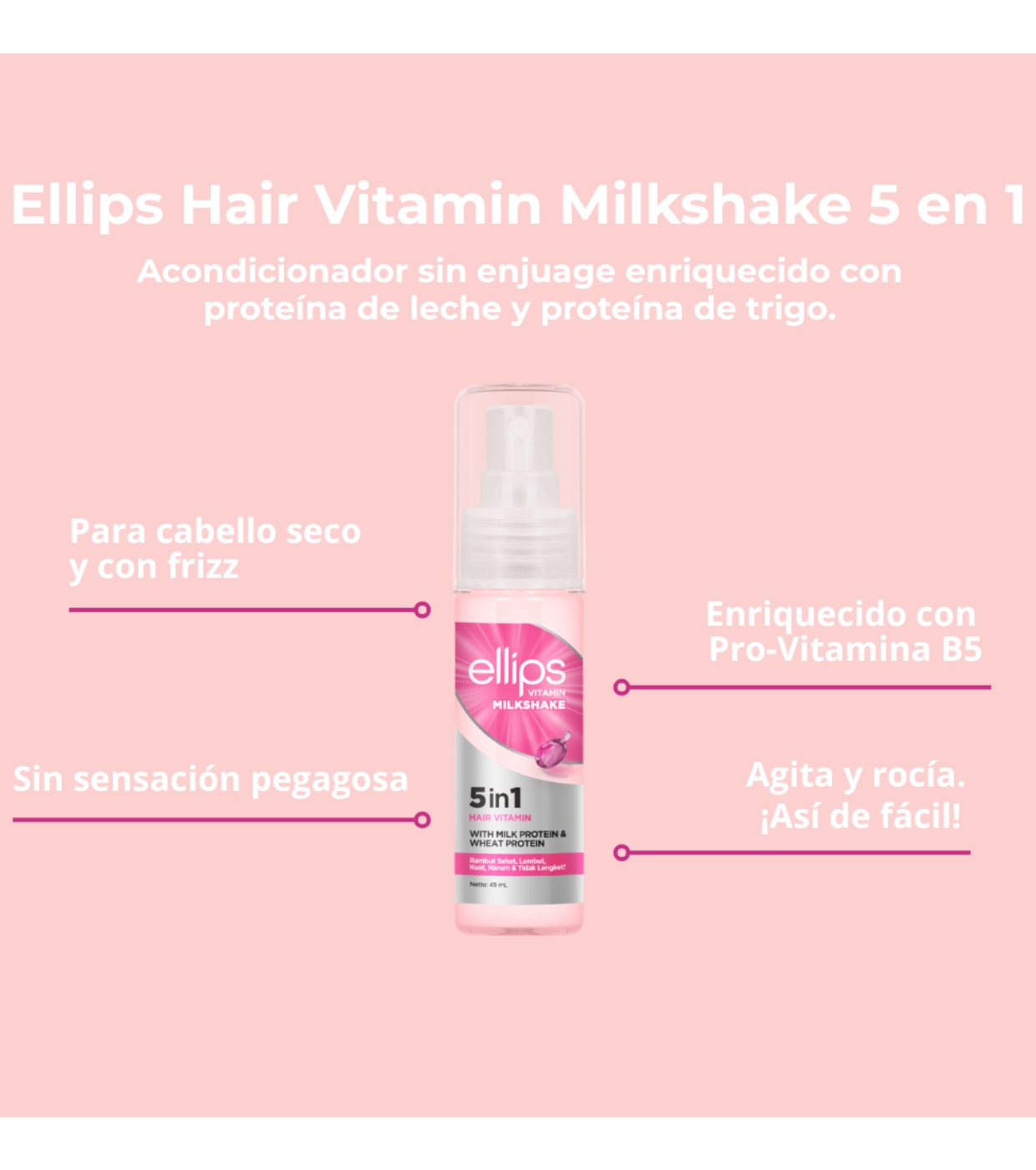 Lo spray condizionante 5 in 1 Ellips è un pratico trattamento quotidiano per la cura dei capelli che idrata, ammorbidisce e facilita la messa in piega senza bisogno di risciacquo.