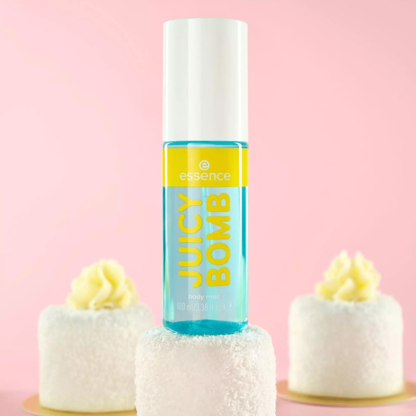 Lasciati conquistare dal delizioso aroma della tua torta preferita al cocco e vaniglia con lo spray corpo JUICY BOMB 105 Coconut Chill di essence .