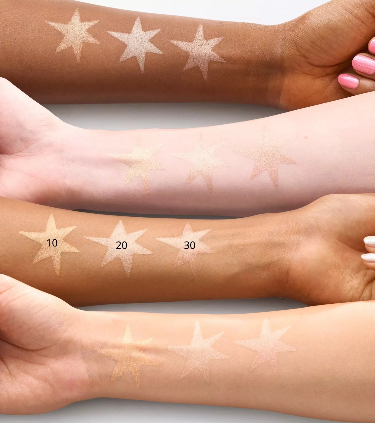 La sua formula leggera si fonde facilmente, creando un effetto luminoso modulabile, da una delicata brillantezza a una luminosità più intensa.