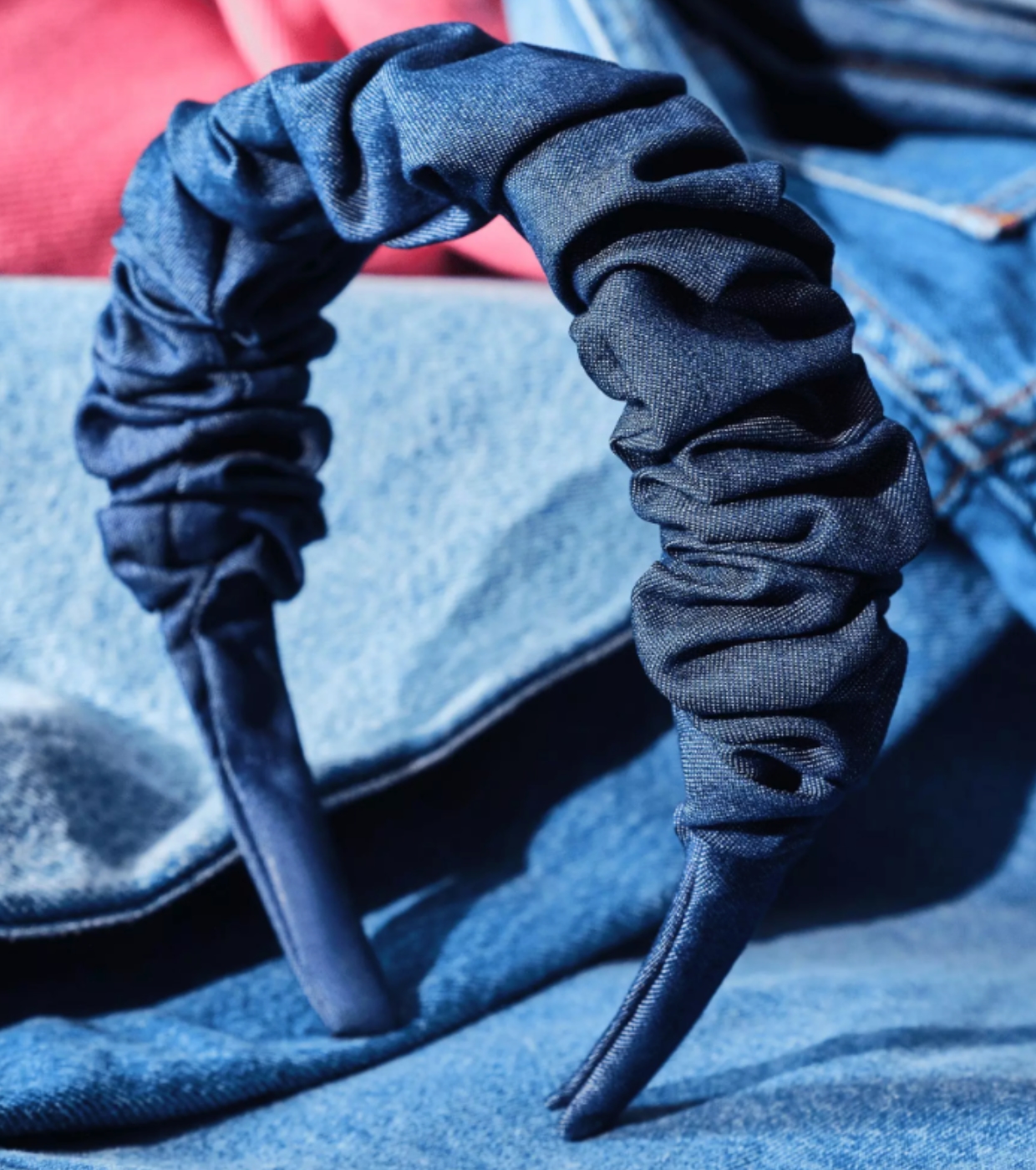 Realizzata con una finitura in denim blu scuro, questa fascia aggiunge un look moderno e casual che si abbina facilmente a tutto.